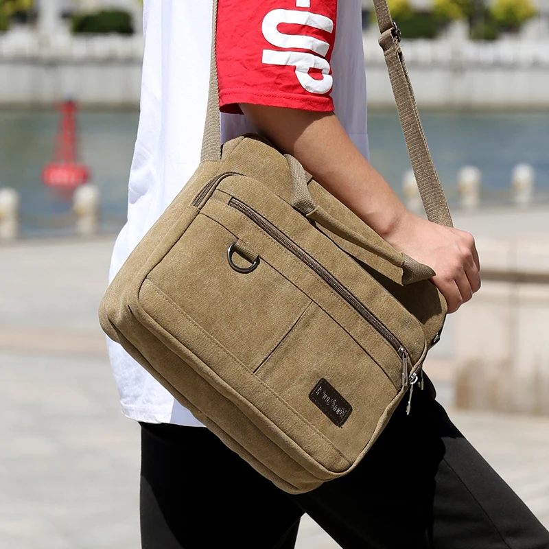 Men Casual Canvas Crossbody Bag for School Durable Messenger Bags Light Shopping Travel Shoulder Bags