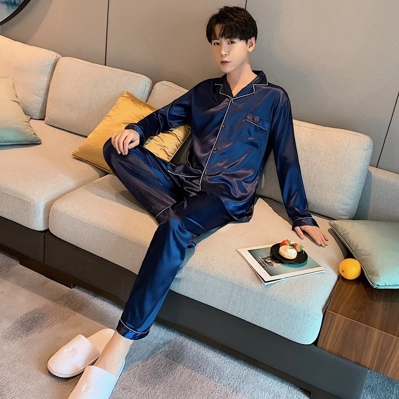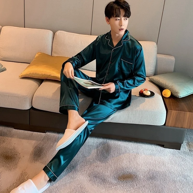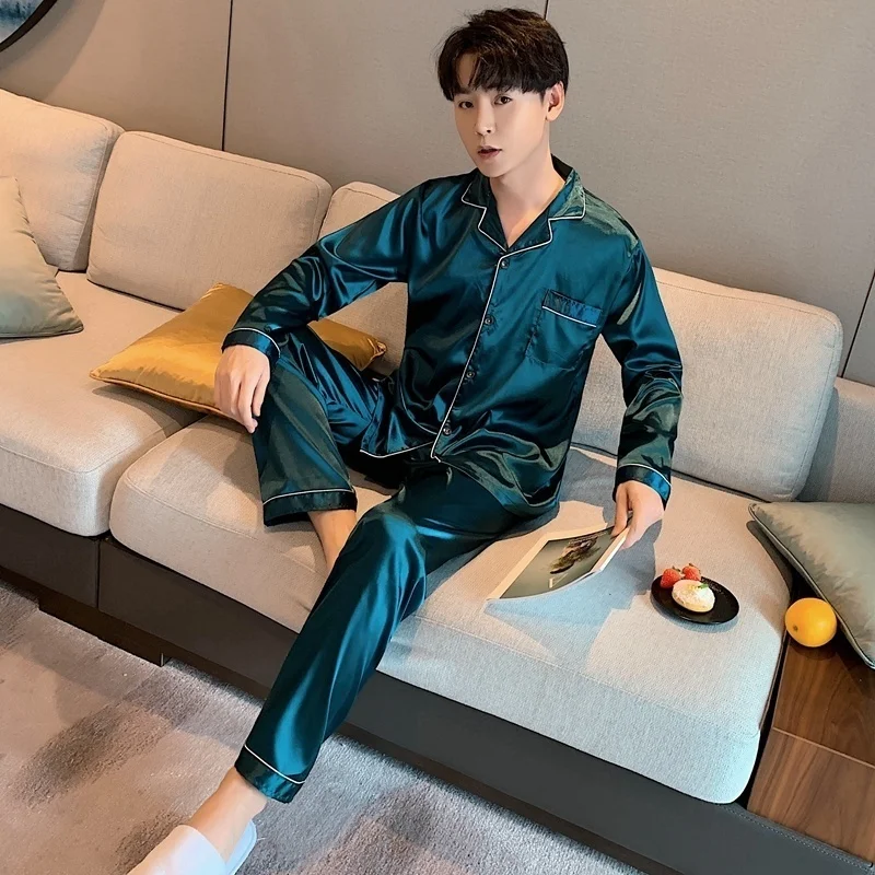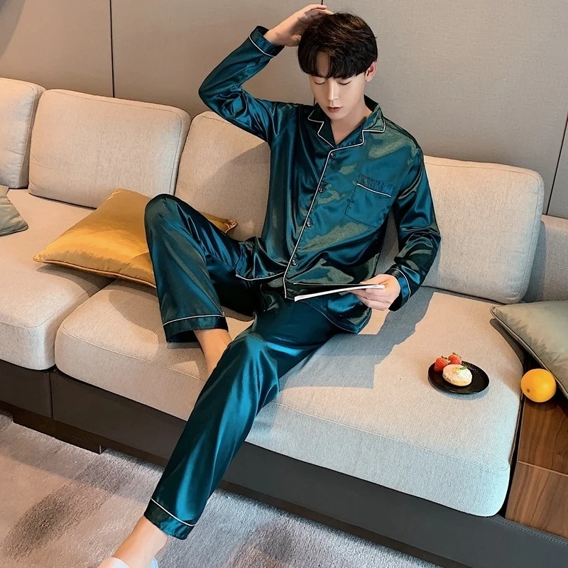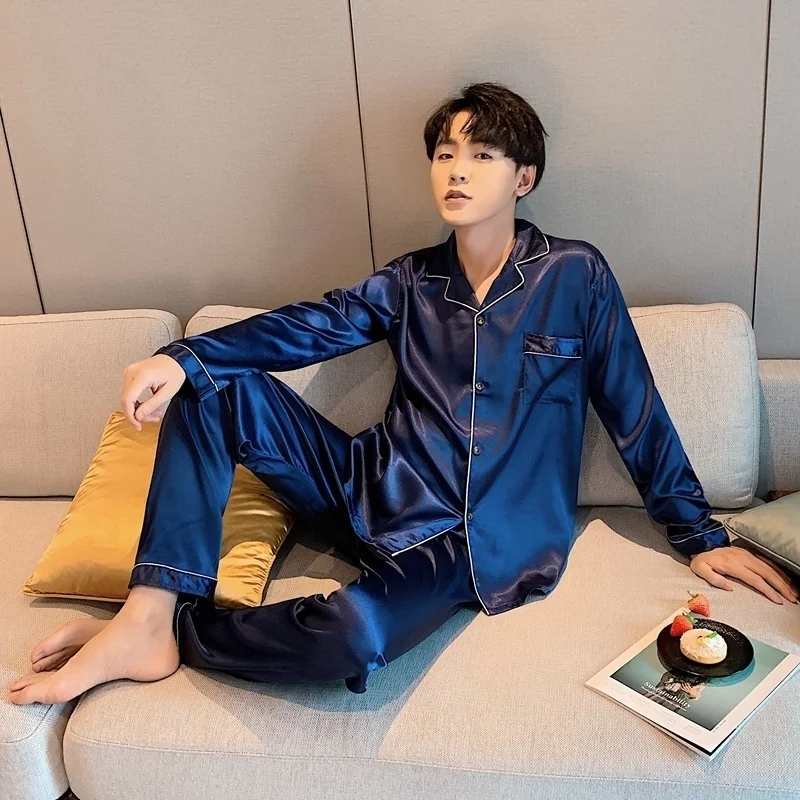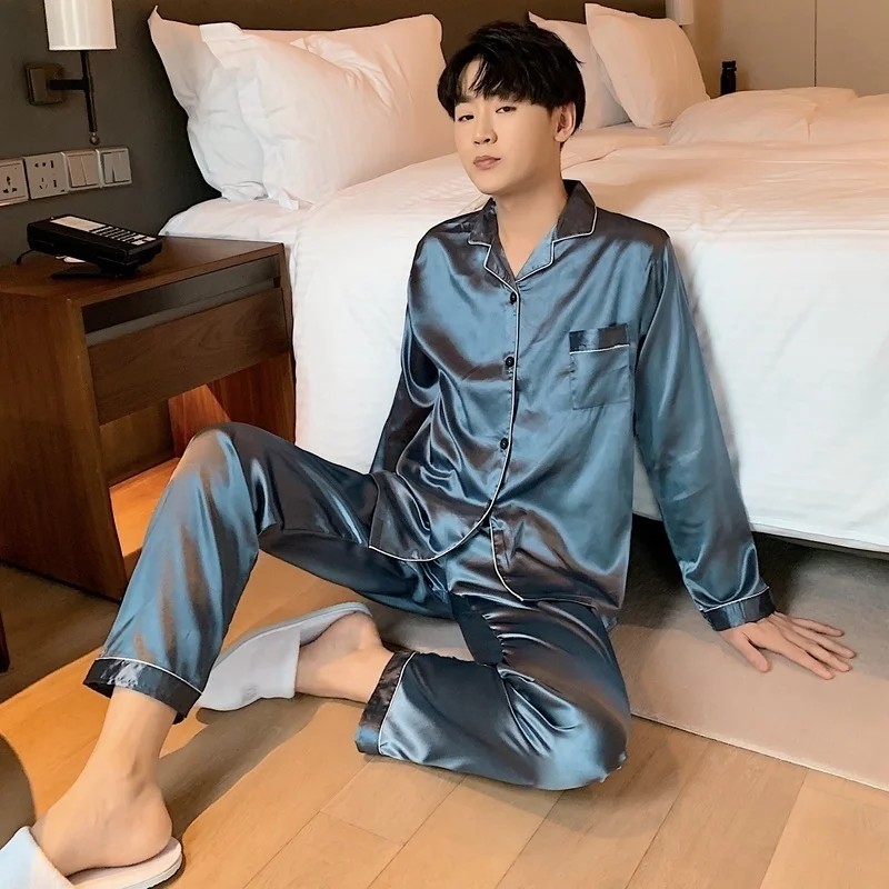 Men Loungewear Pyjamas Set for Men Nightwear Long Sleeve Sleep Tops Trousers Satin Silk Pajamas Men Sleepwear Set Pijama Set