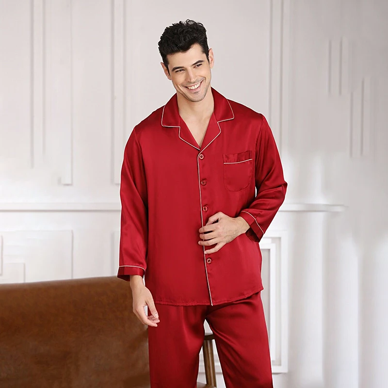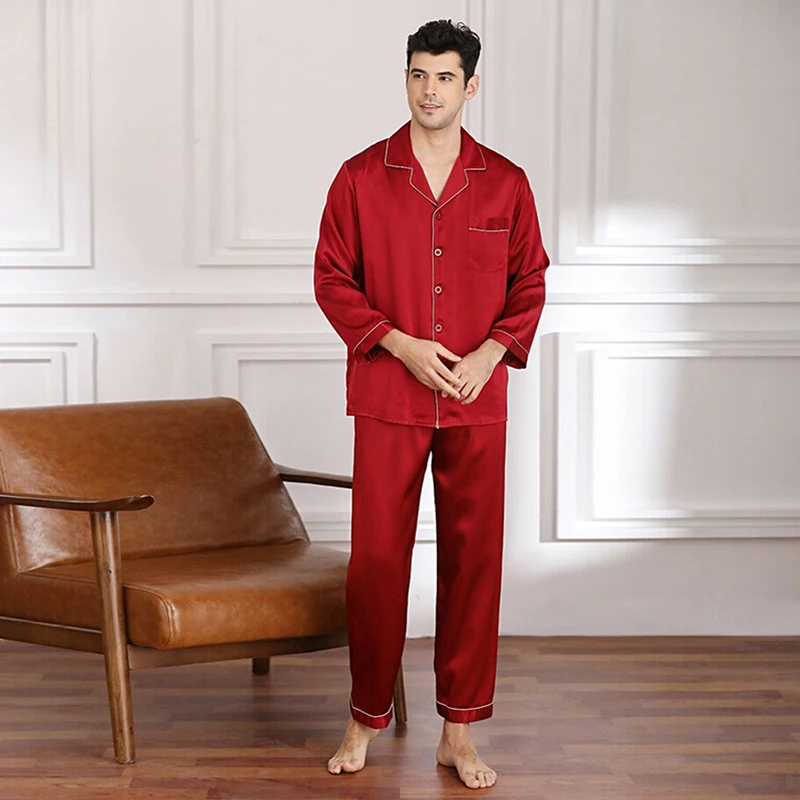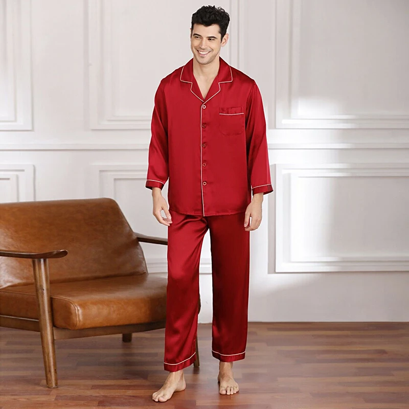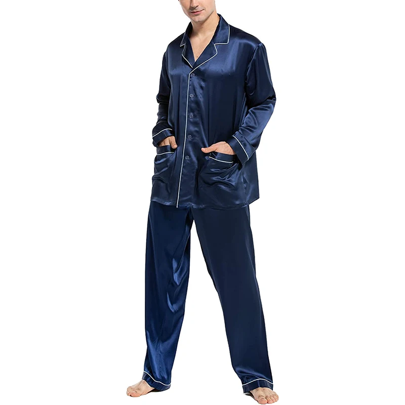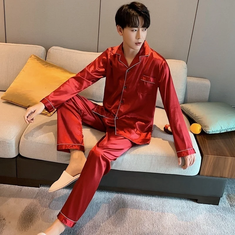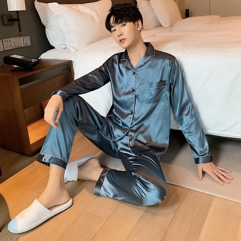 Men Loungewear Pyjamas Set for Men Nightwear Long Sleeve Sleep Tops Trousers Satin Silk Pajamas Men Sleepwear Set Pijama Set
