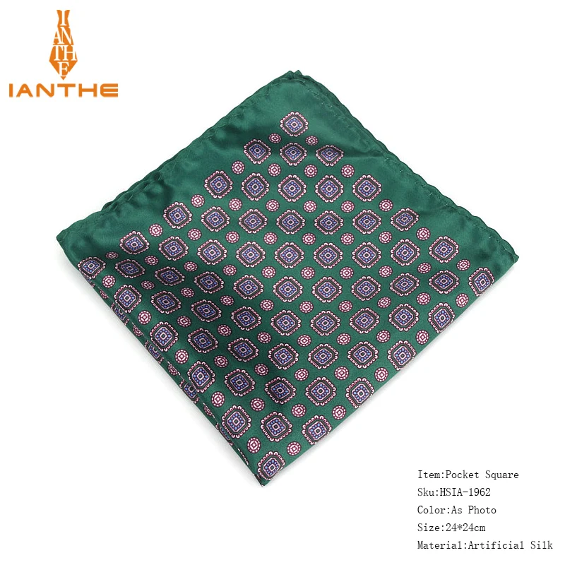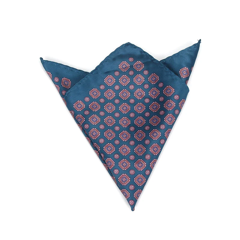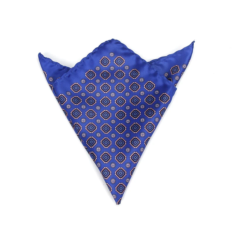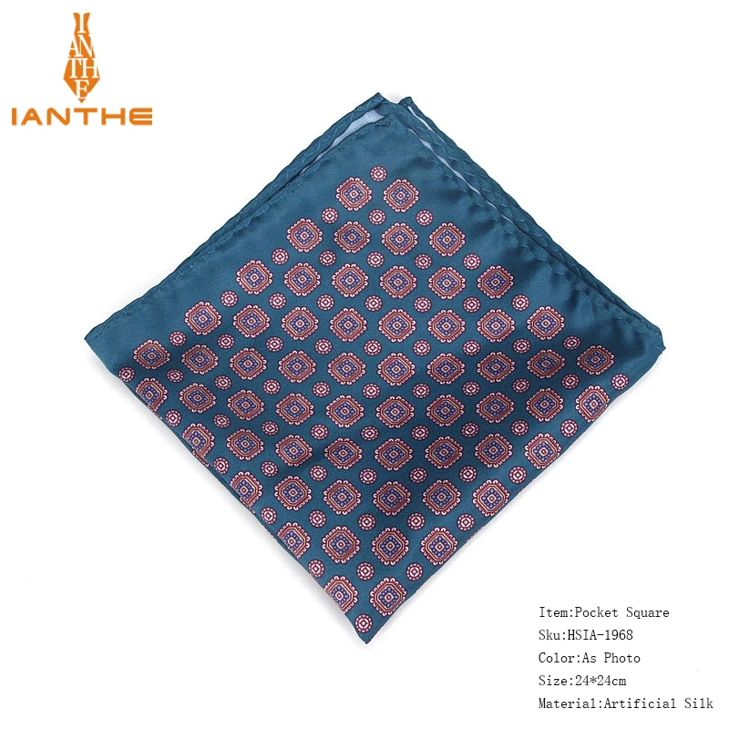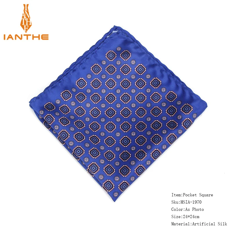 Men's Brand Handkerchief Vintage Geometric Pocket Square Soft Hankies Wedding Party Business Silk Colorful Chest Towel Gift Navy