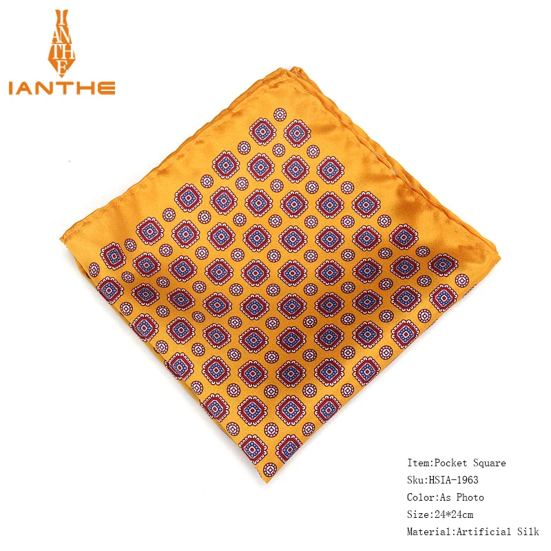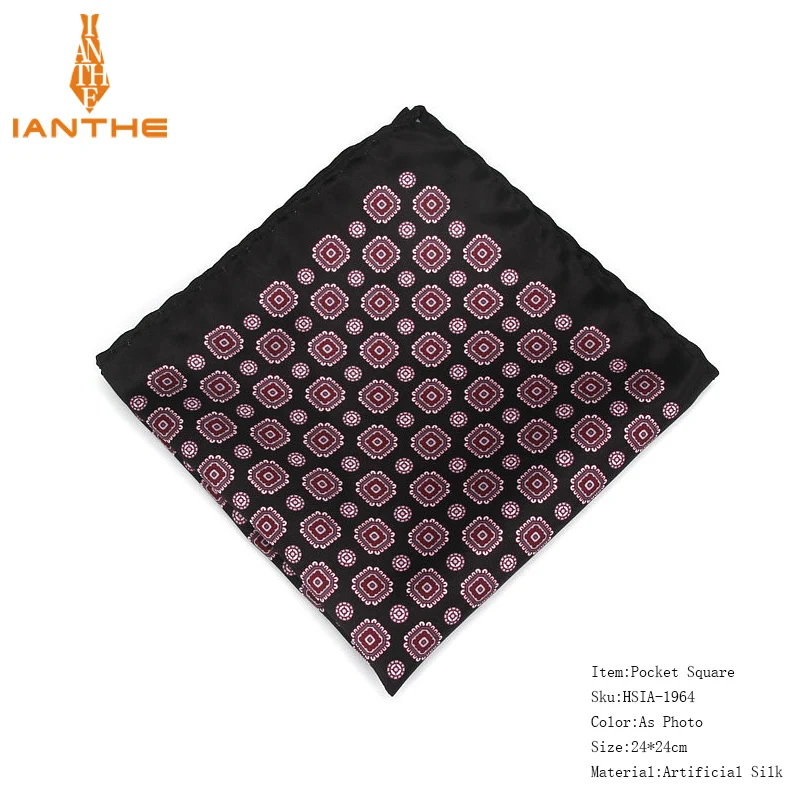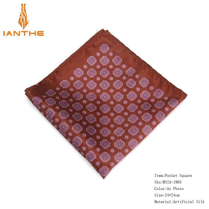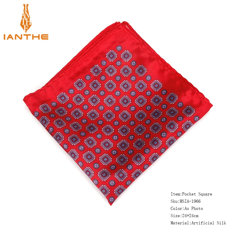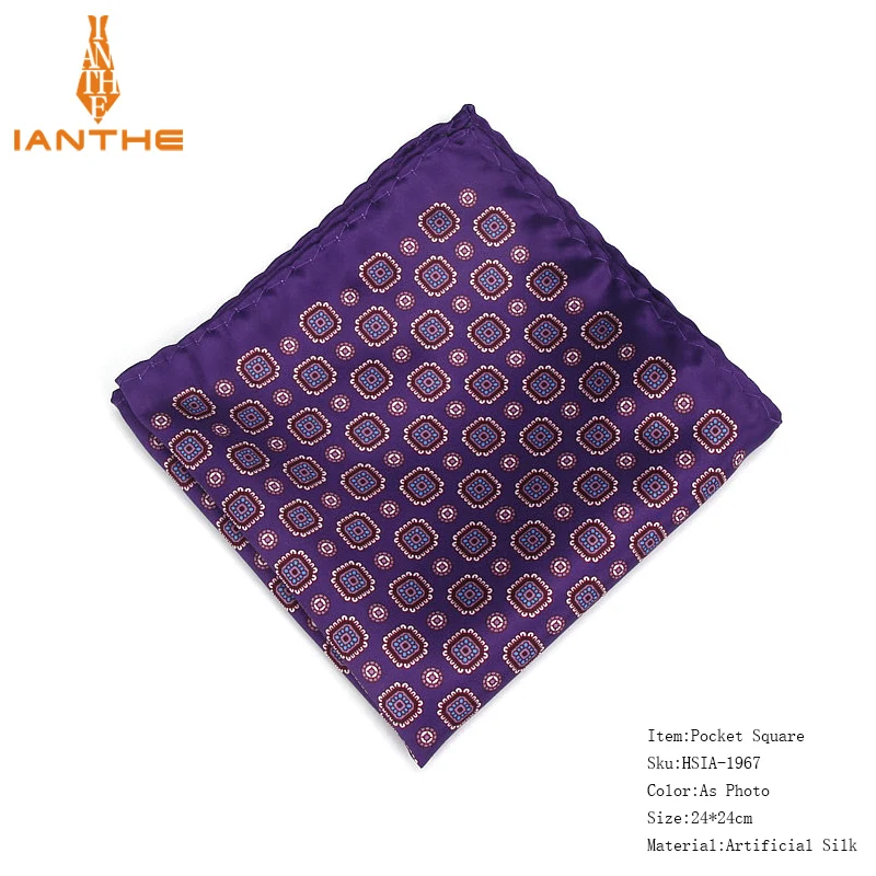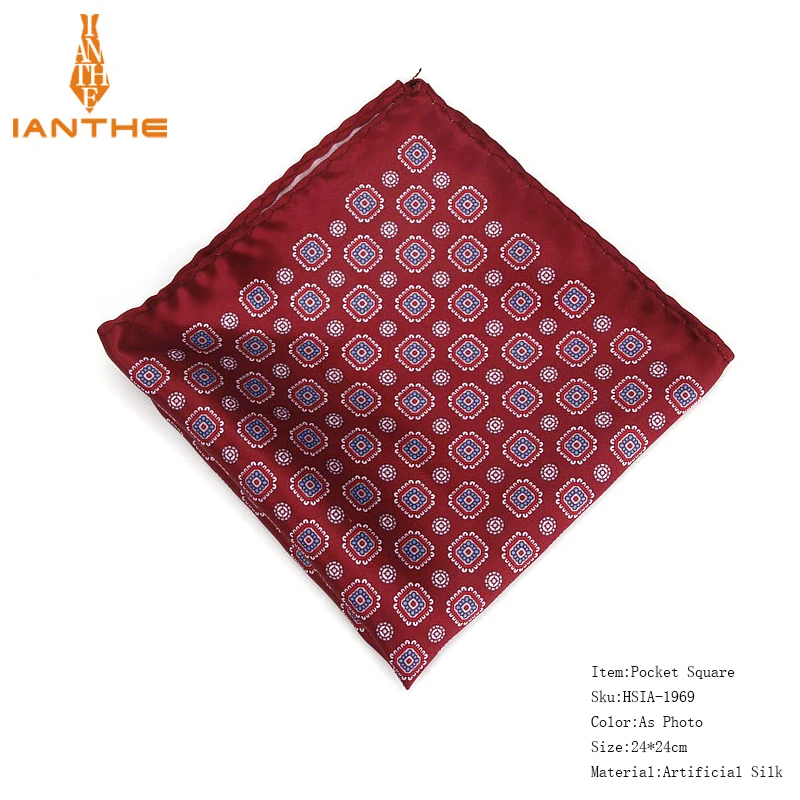 Men's Brand Handkerchief Vintage Geometric Pocket Square Soft Hankies Wedding Party Business Silk Colorful Chest Towel Gift Navy