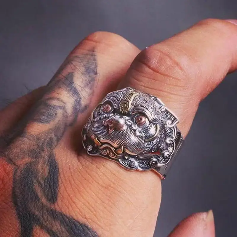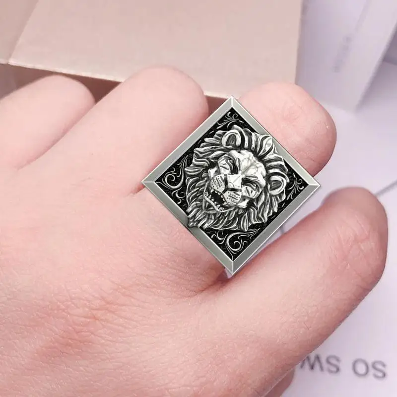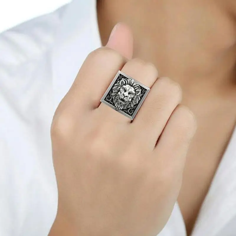 Men's Combination Rings Set Hip Hop Viking Secret Kingdom Lion King Big Ring For Male New Fashion Animal Carving Jewelry Gift