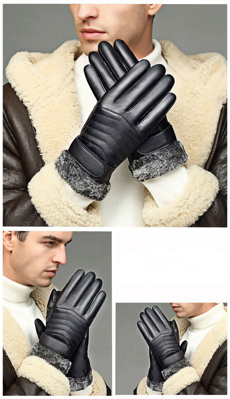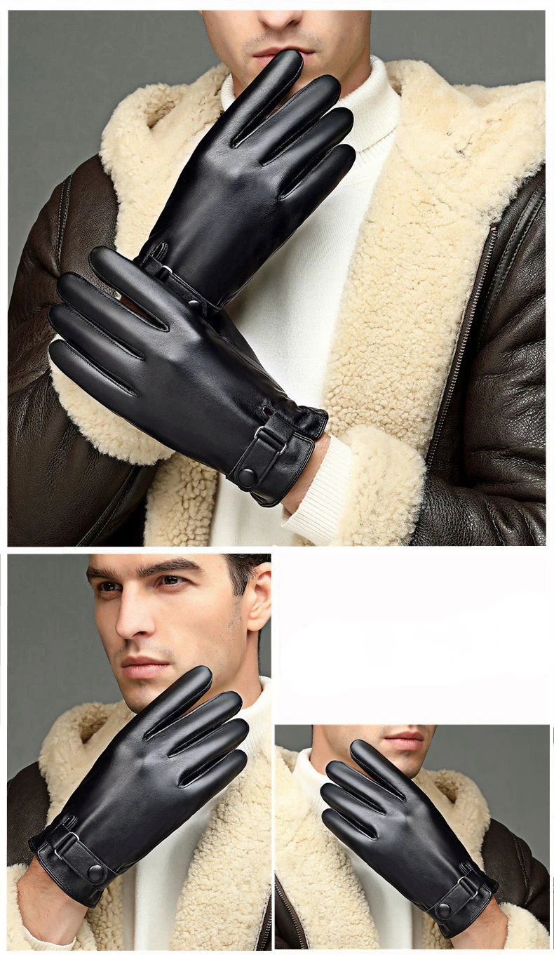 Men's Gloves Black Winter Mittens Keep Warm Touch Screen Windproof Driving Guantes Male Autumn Winter Business PU Leather Gloves