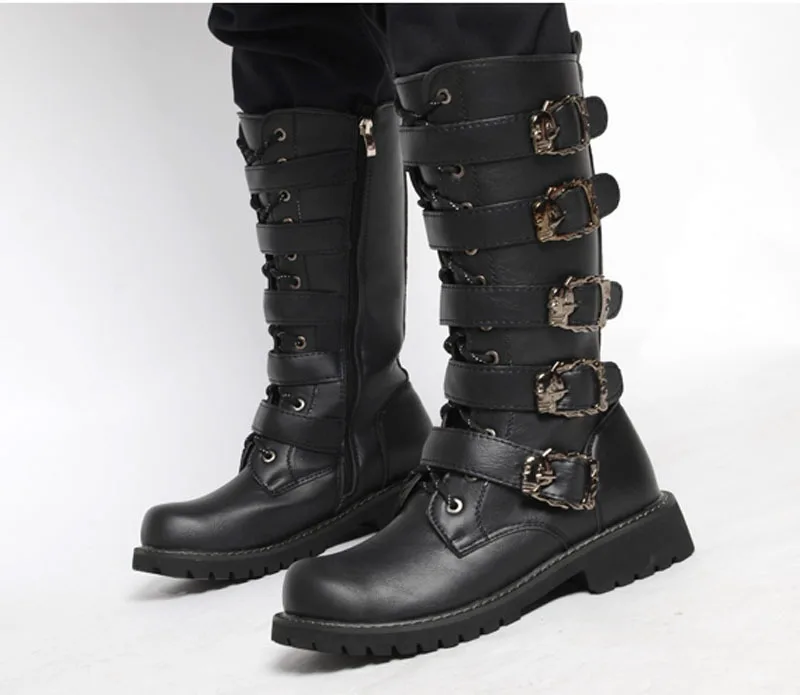 Men's Leather Boots Gothic Belt Punk Boots Men Shoes