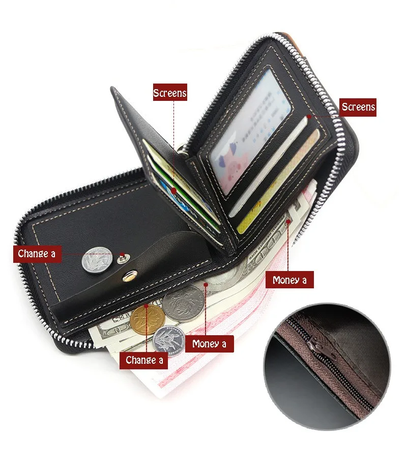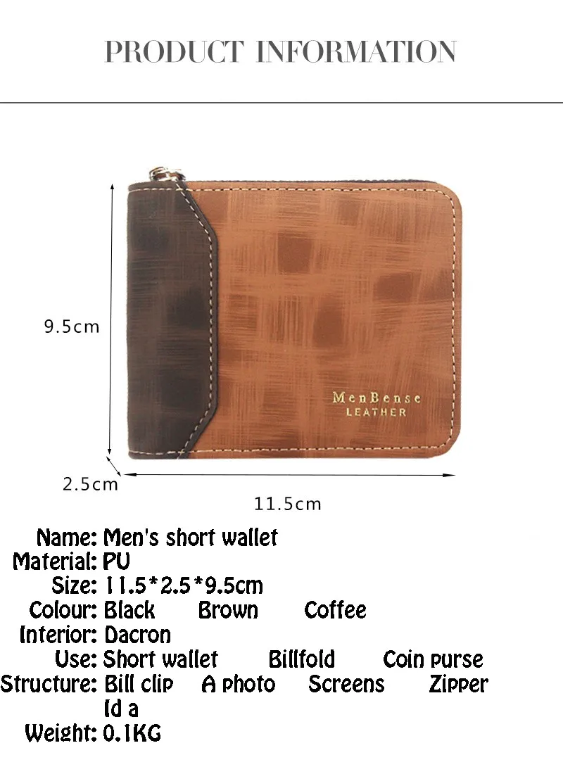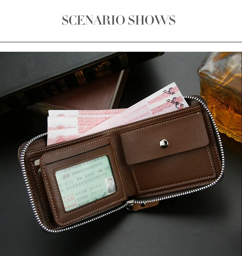 men's leather wallet Casual Zipper Men Wallets Card Holder Small Wallet Male Synthetic Leather Purse Coin Purse cartera hombre