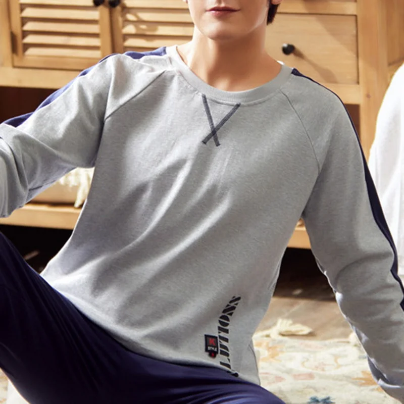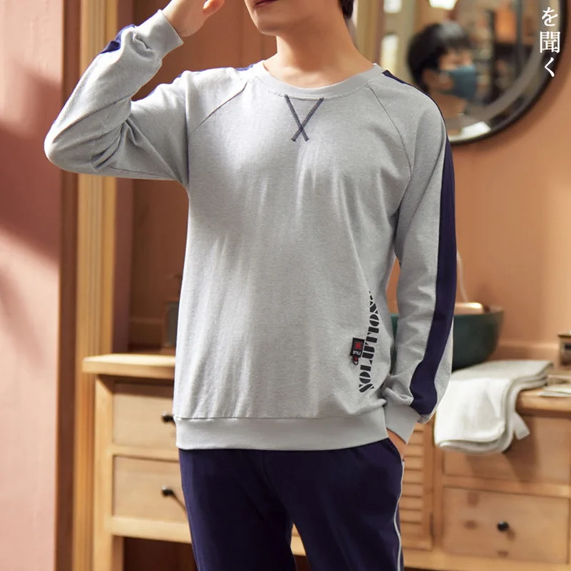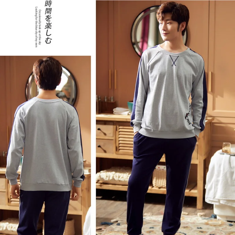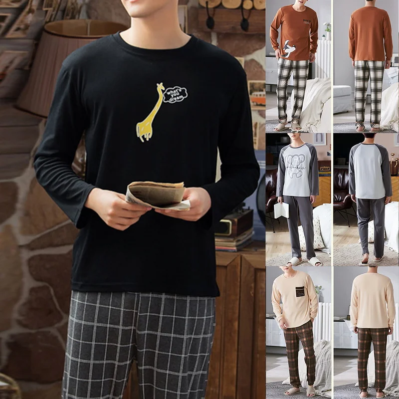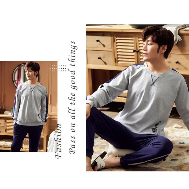 Men's Pajama Sets New Spring Autumn Men Sleepwear Set Long Sleeve Polyester Pajamas for Men Elastic Waist Pant Leisure Outwear
