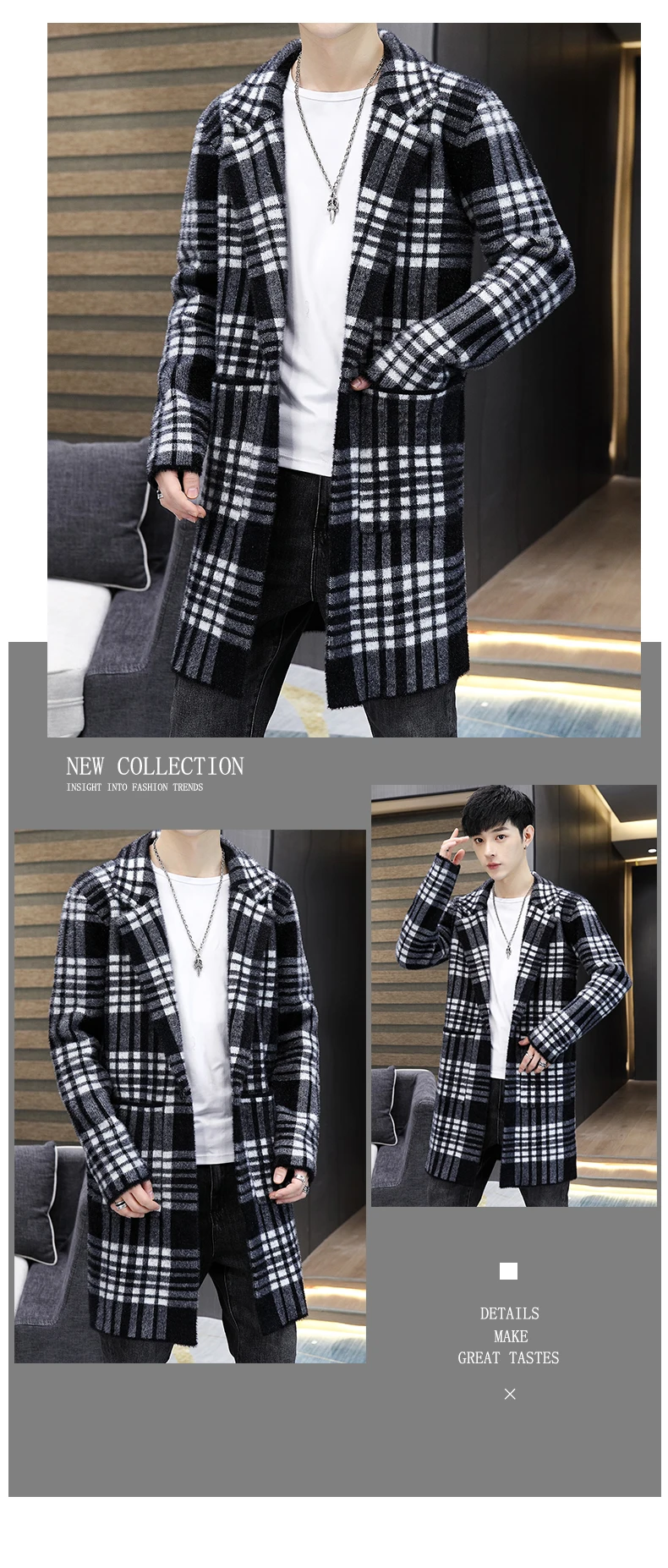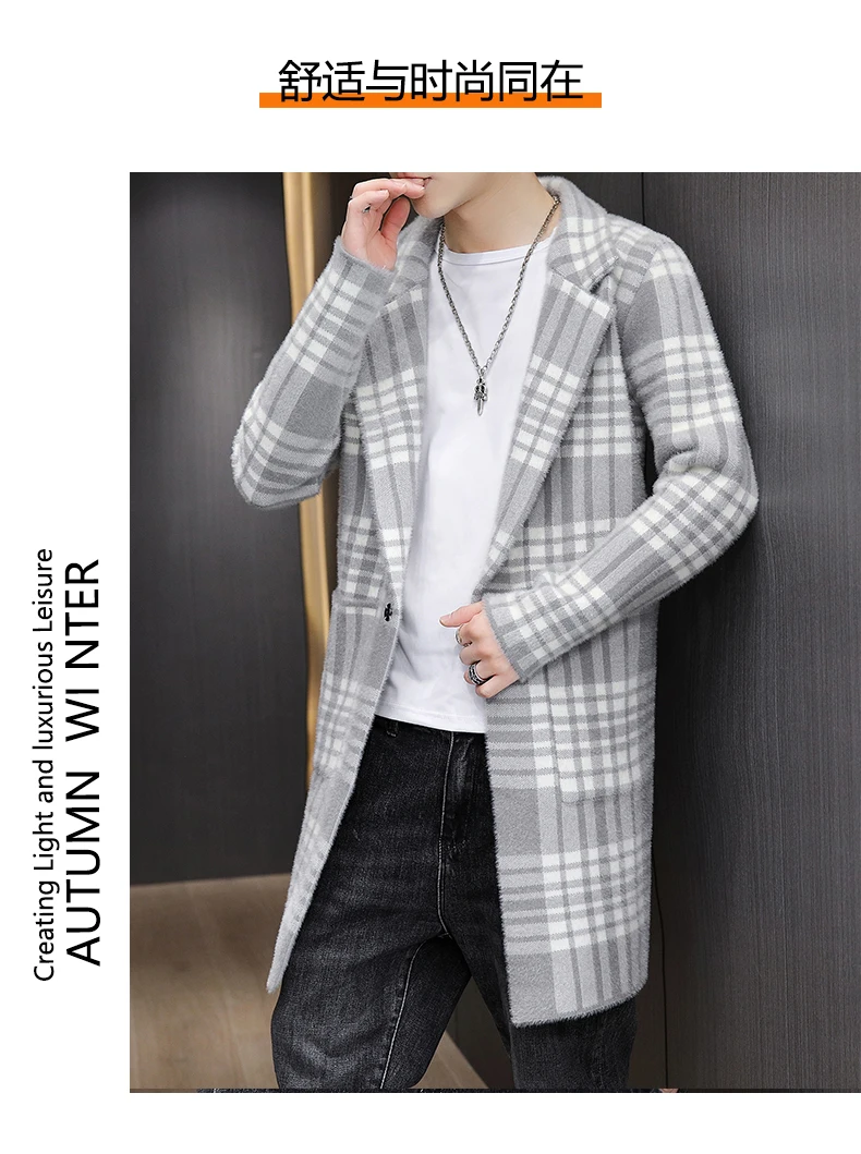 Men's Wool Hooded Cardigan Autumn Winter Warm Thick Slim Coat Fashion Long Clothes Knitted Casual Male Sweaters Woolen Coat