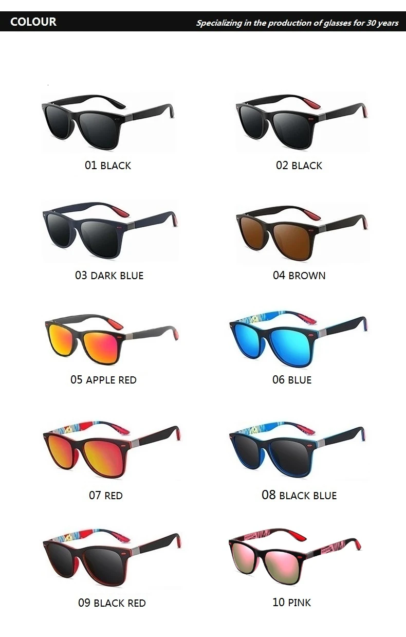- Lens color: - Black,Gray,Blue,Brown,Red,Orange