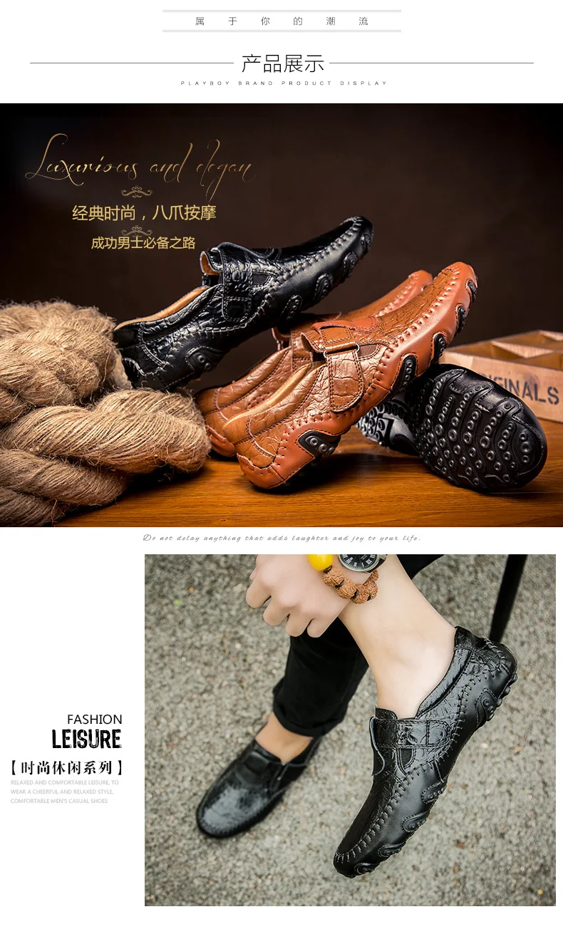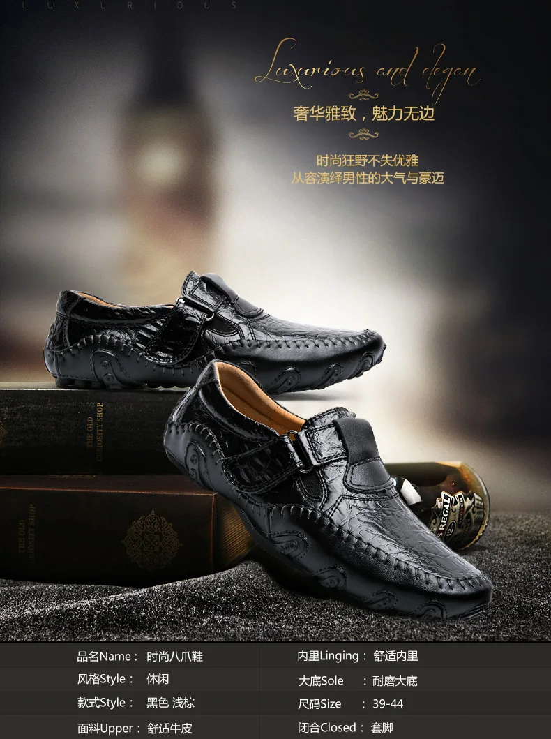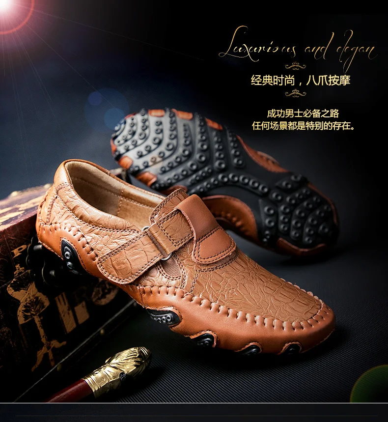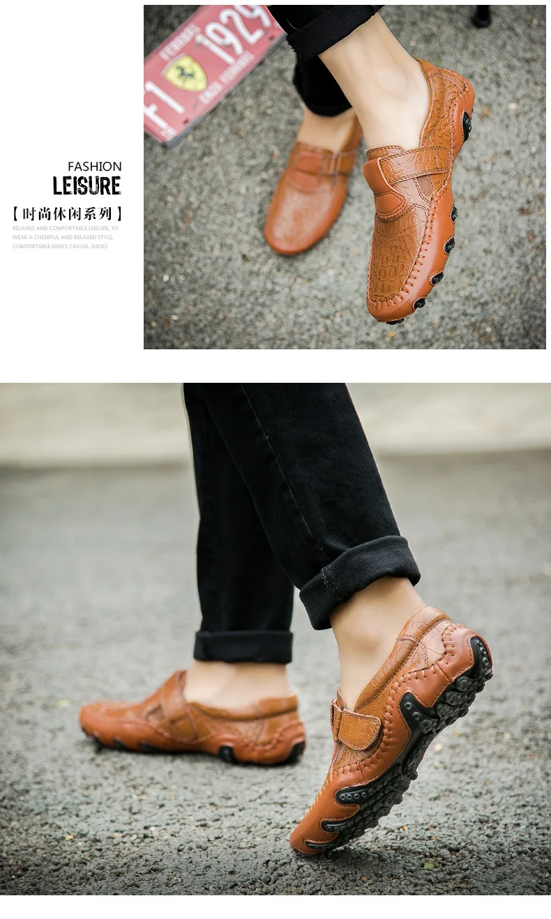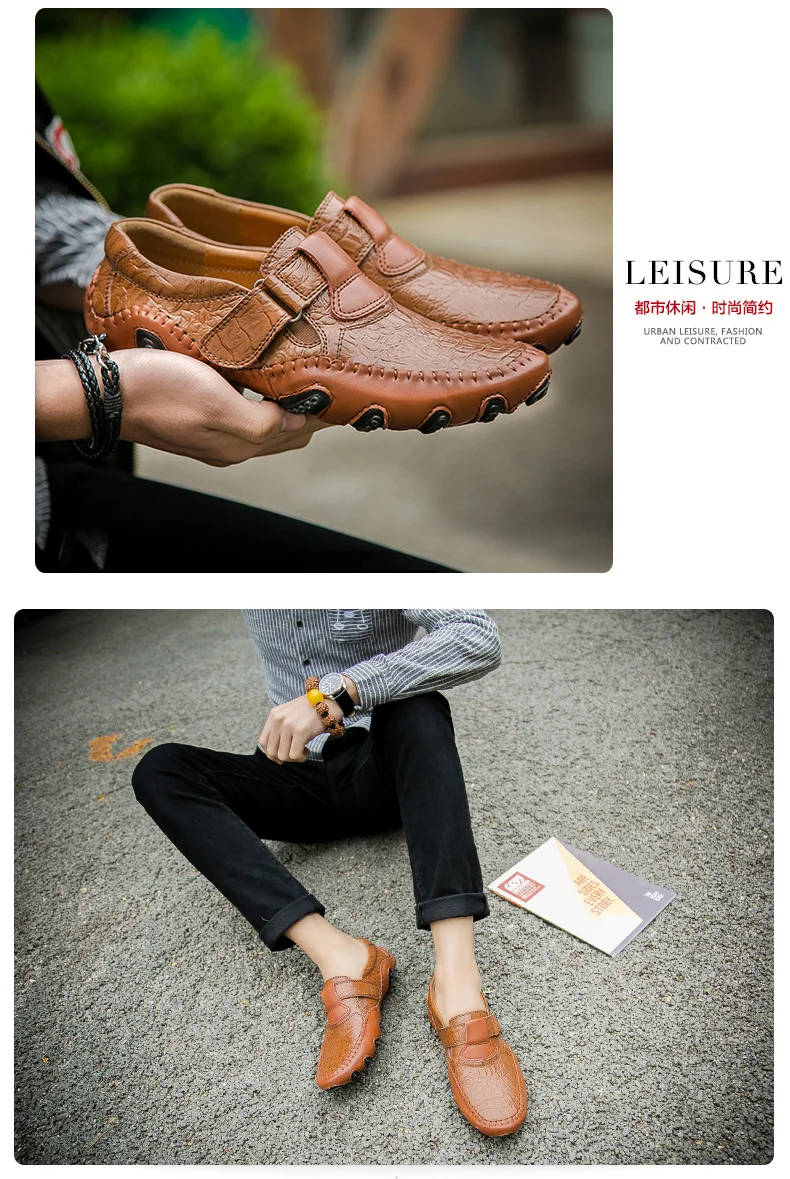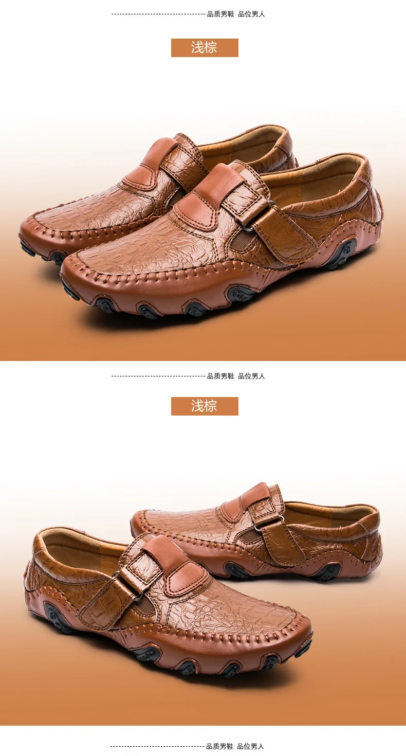 Mens Loafers Shoes Luxury Fashion Velcro Men Shoes Black Brown Leather Men's Shoes Super Comfortable Light Loafers Men Size38-47