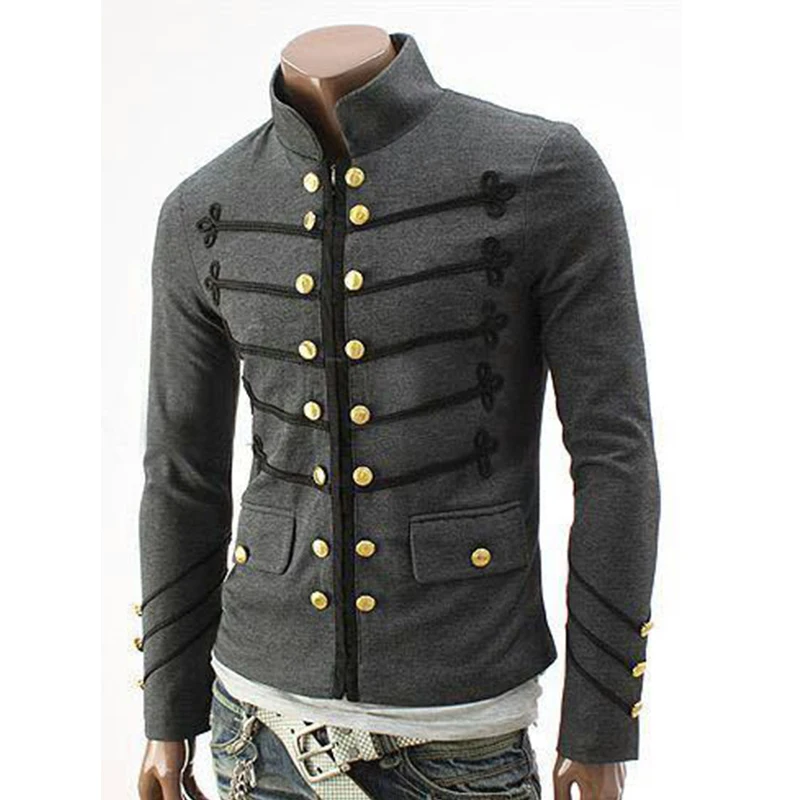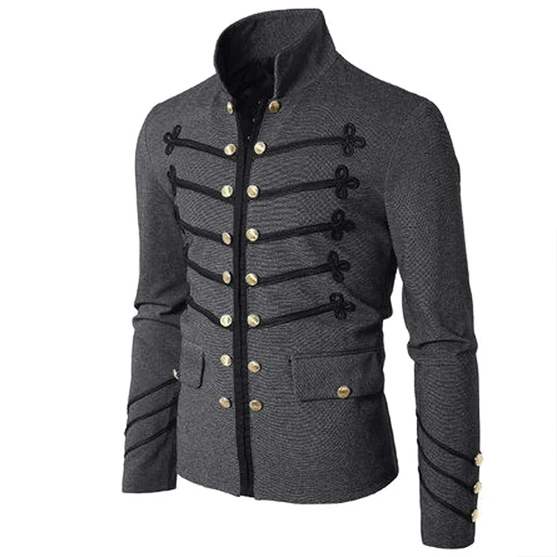 Mens Vintage Steampunk Gothic Clothing Solid Color Embroidered Button Jacket Victorian Punk Coat Tuxedo Suit Куртка Mужская
