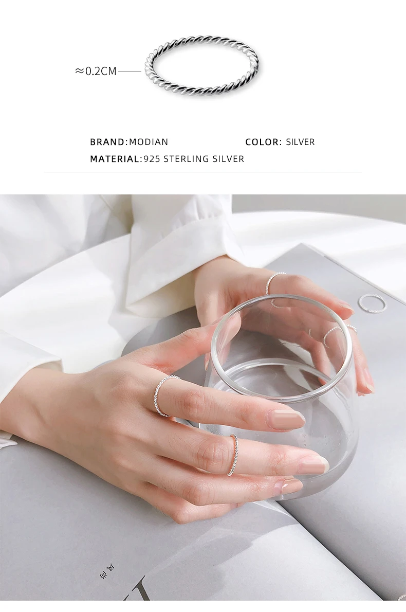 Modian Fashion Twist Slim Ring for Women Classic 925 Sterling Silver Minimalism Open Adjustable Stackable Ring Fine Jewelry