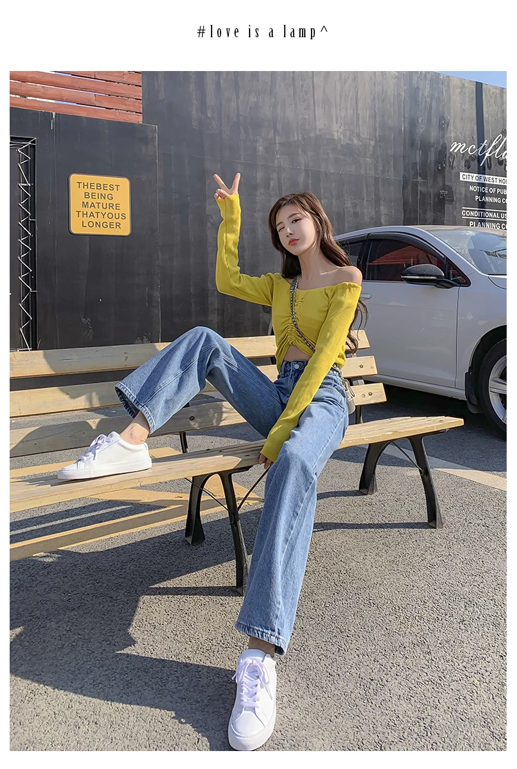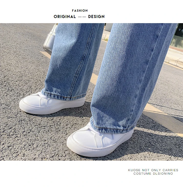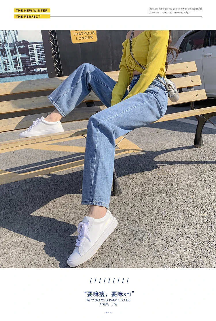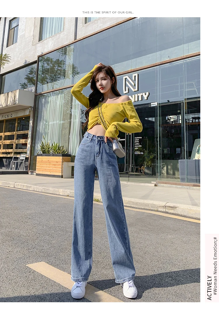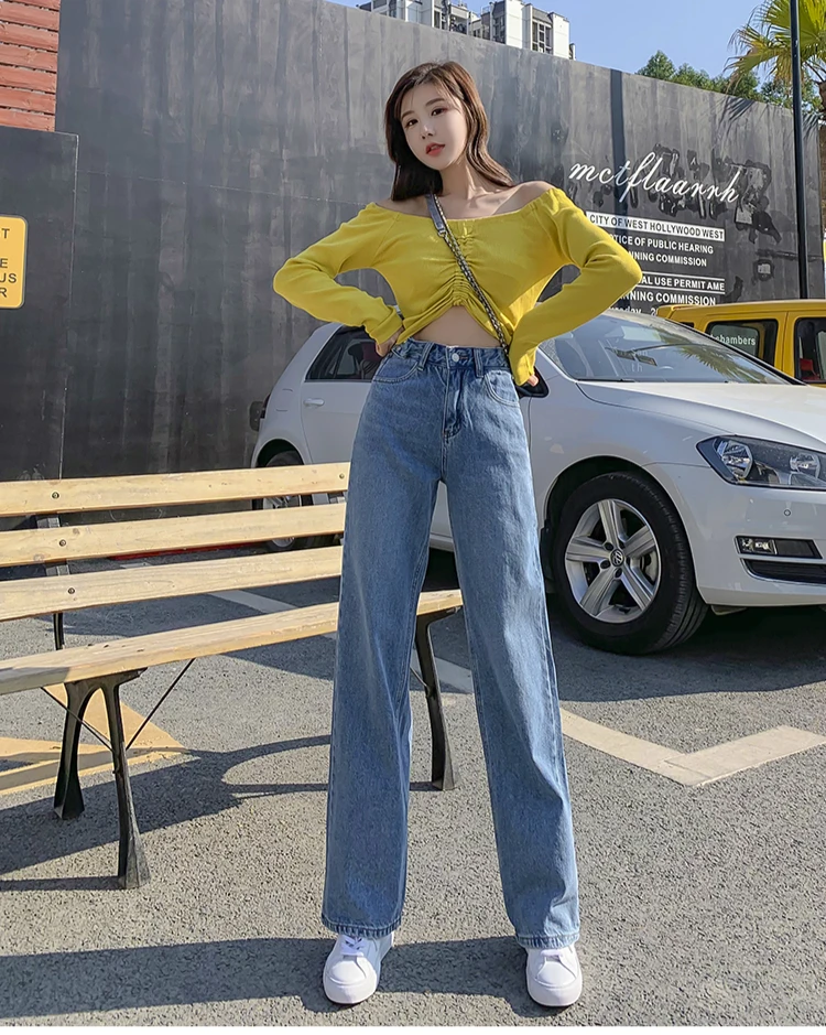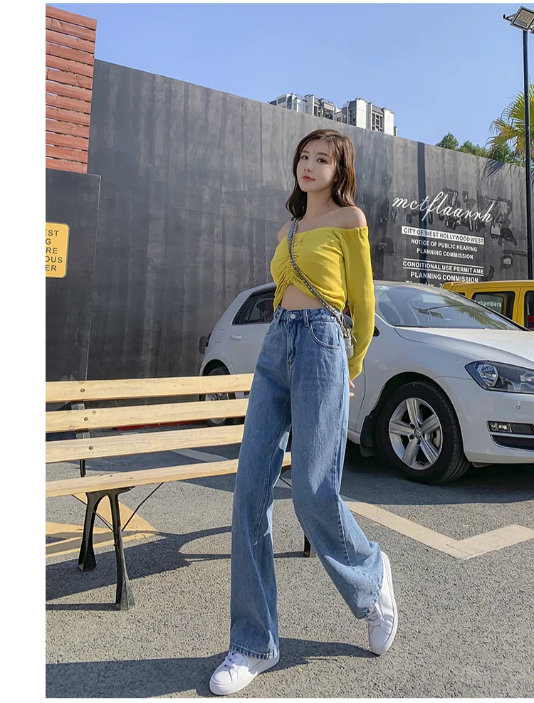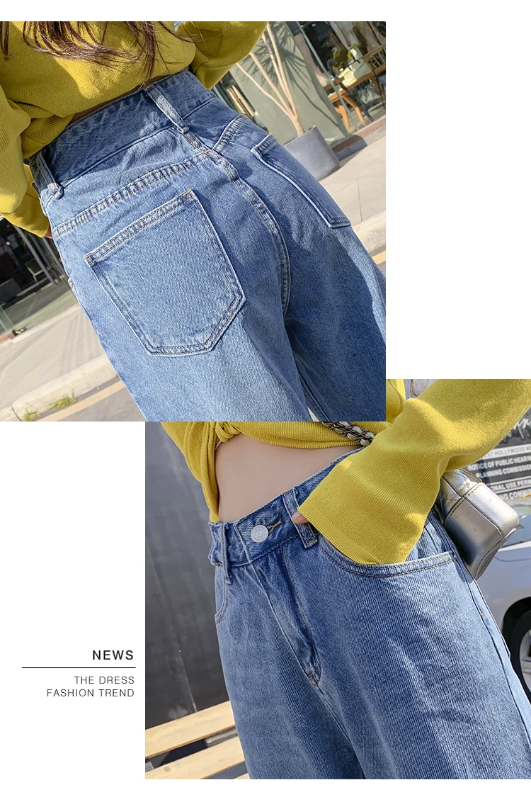 Mozuleba 2020 Spring New High Waist Straight Women Jeans Women Autumn Blue Casual Loose Wide Leg Jeans Striped Trousers Femme