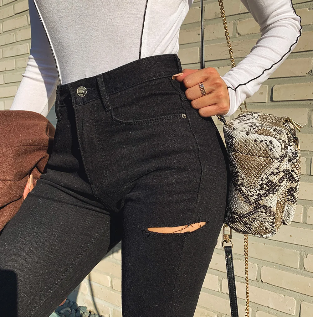 Mozuleva 2020 Women Skinny Pants Black Jeans Sexy High Waist Tassel Ripped Holes Denim Pants Female Trousers Pencil Jeans