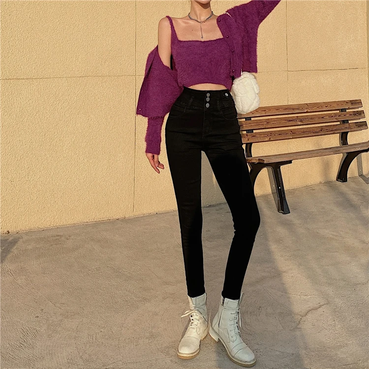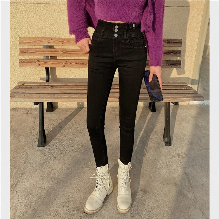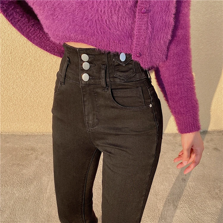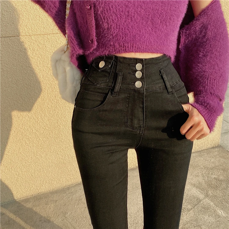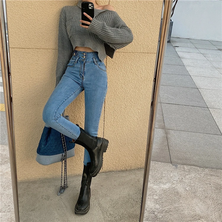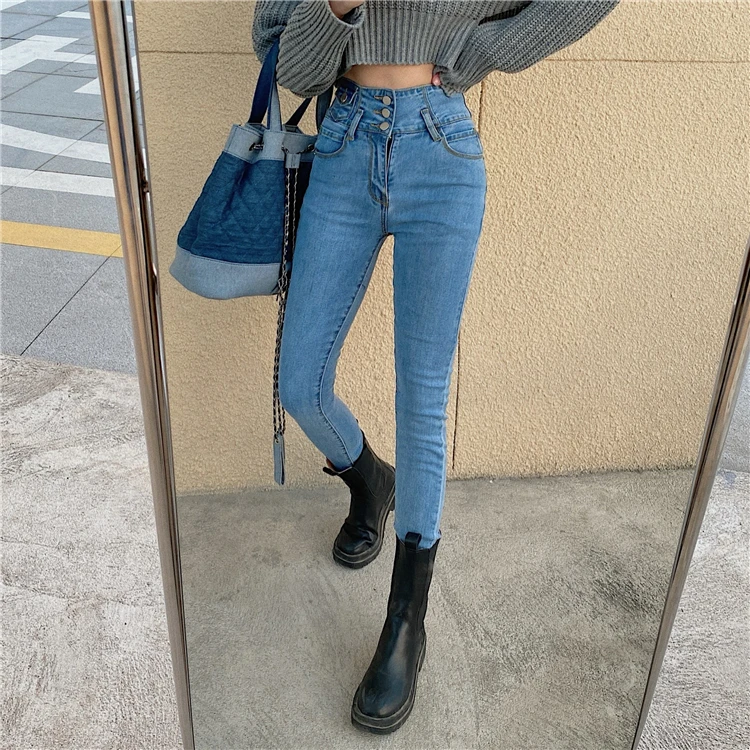 Mozuleva 2021 High Waist Ruffles Women Jeans Pants Single-breasted Female Pencil Jeans Women Streetwear Denim Skinny Trousers