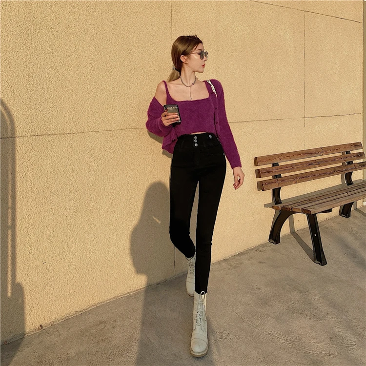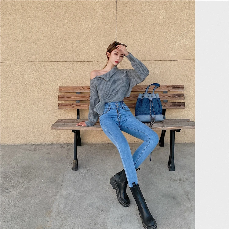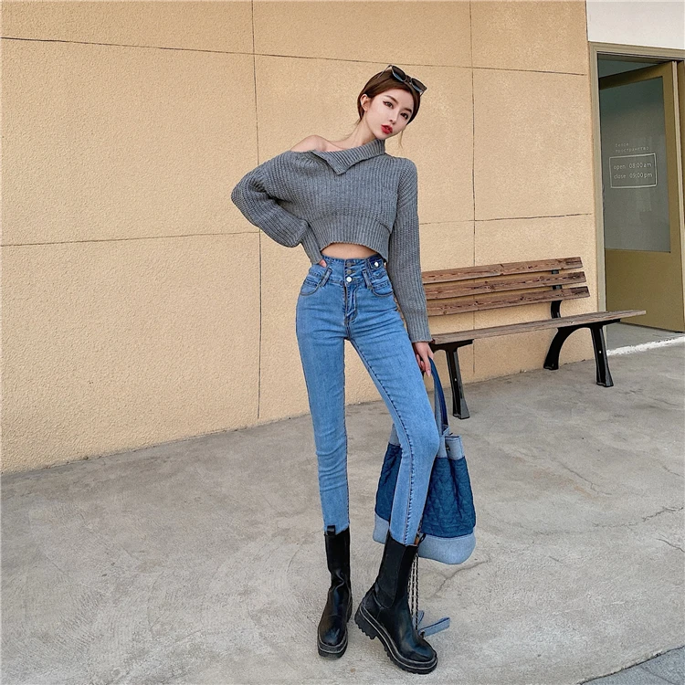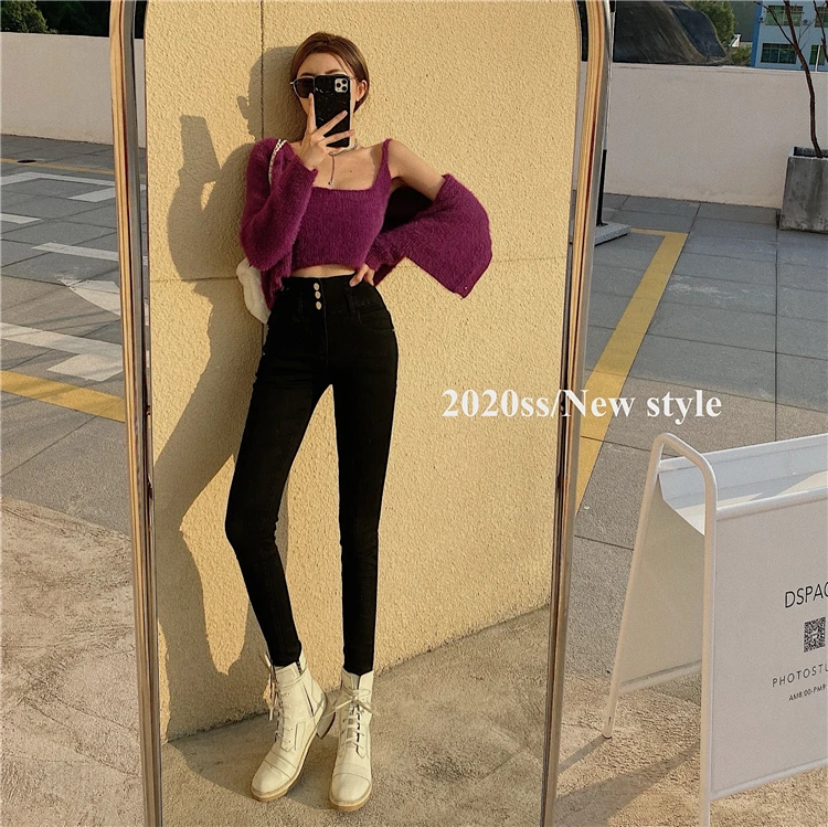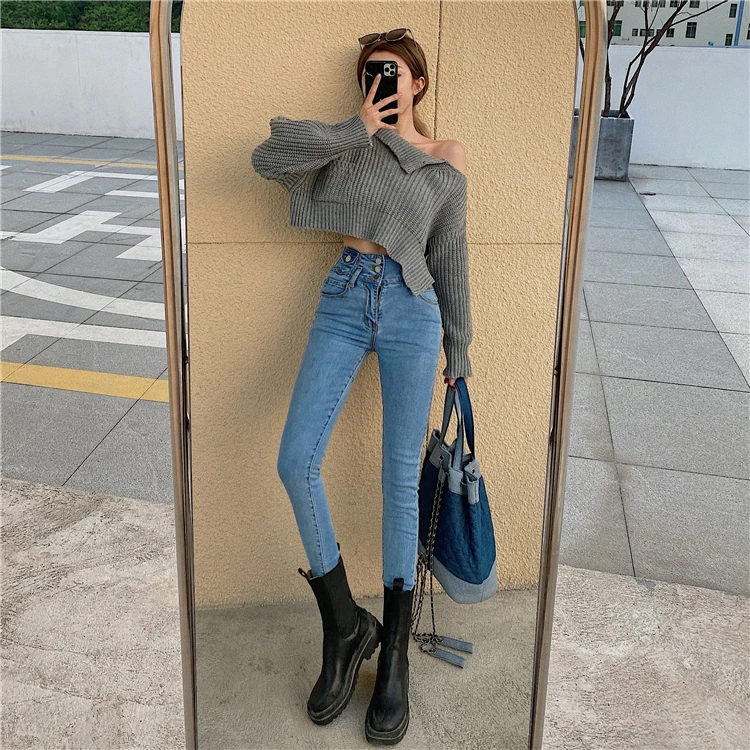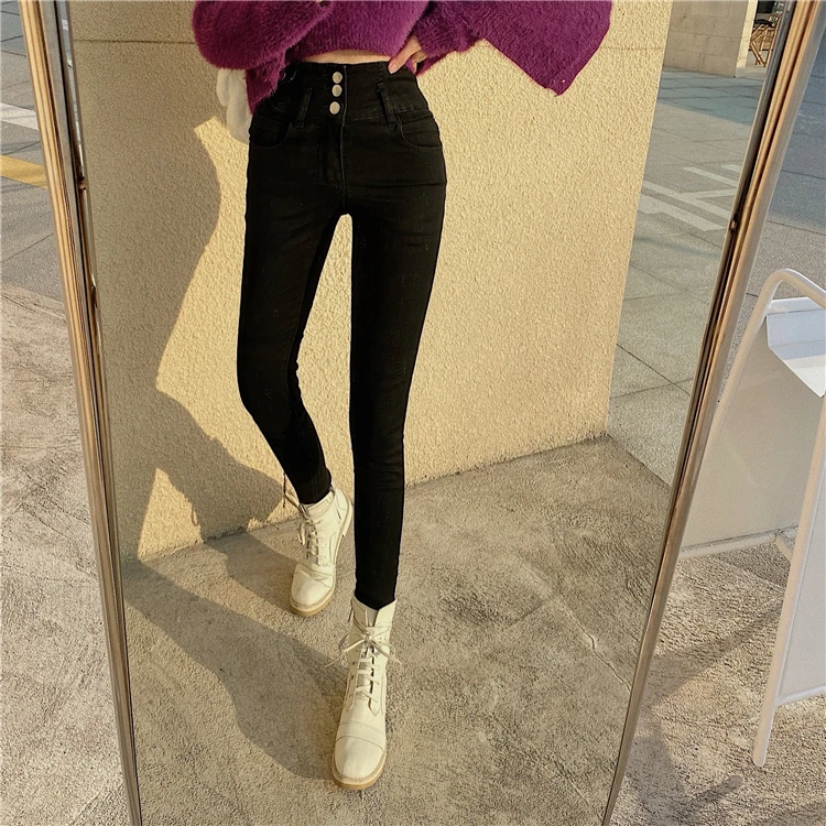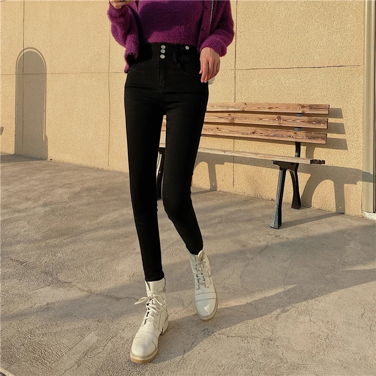 Mozuleva 2021 High Waist Ruffles Women Jeans Pants Single-breasted Female Pencil Jeans Women Streetwear Denim Skinny Trousers
