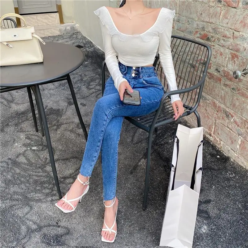 Mozuleva 2021 Spring Sexy High Waist Tassel Ripped Holes Denim Pants Female Trousers Pencil Jeans Women Skinny Pants Blue Jeans