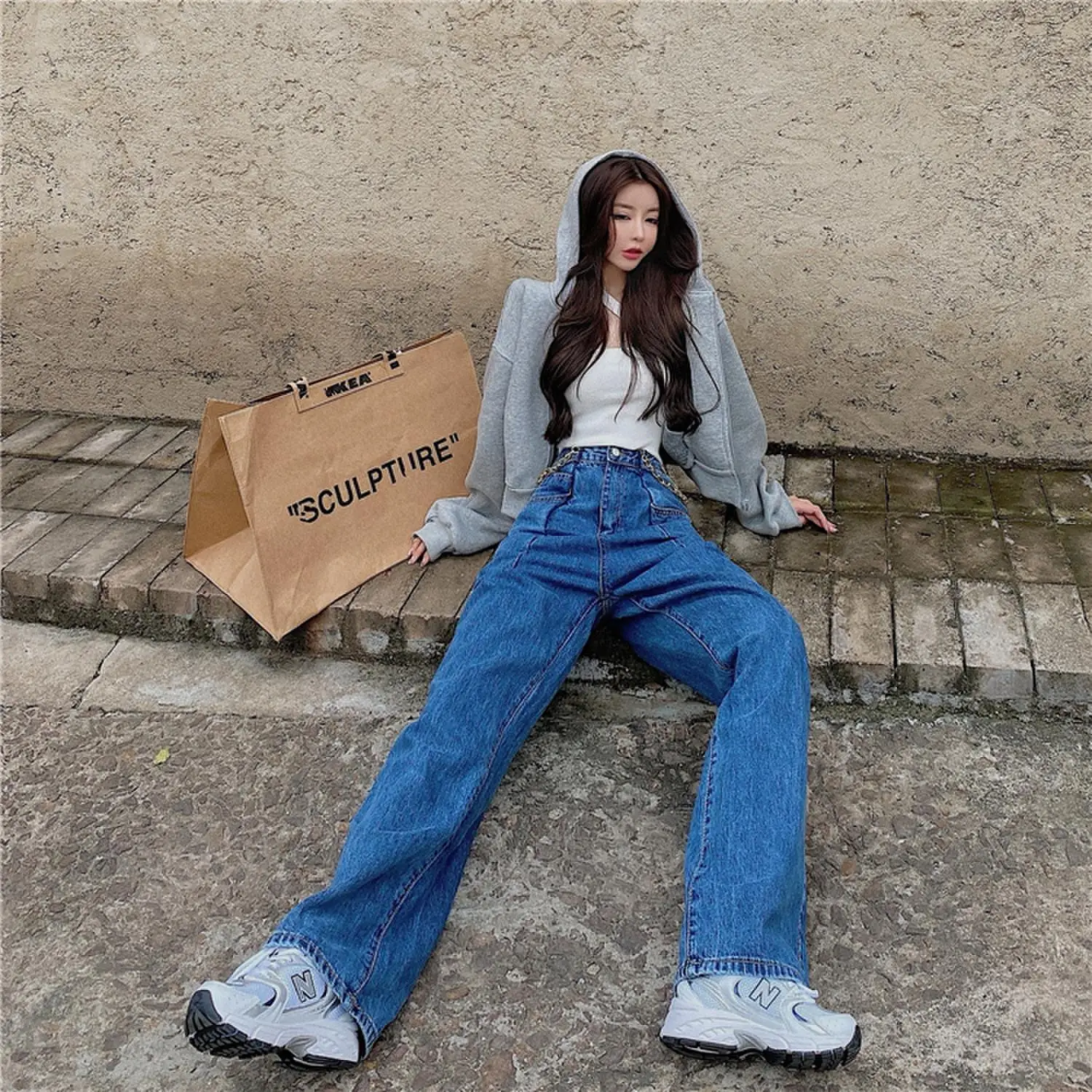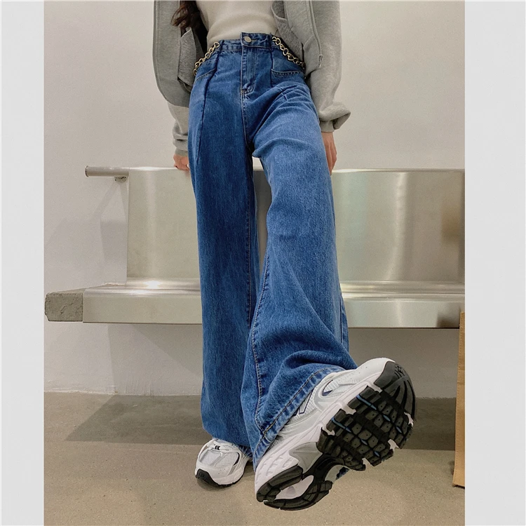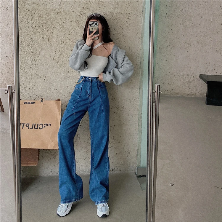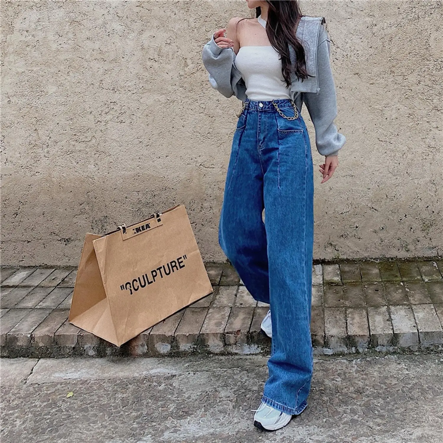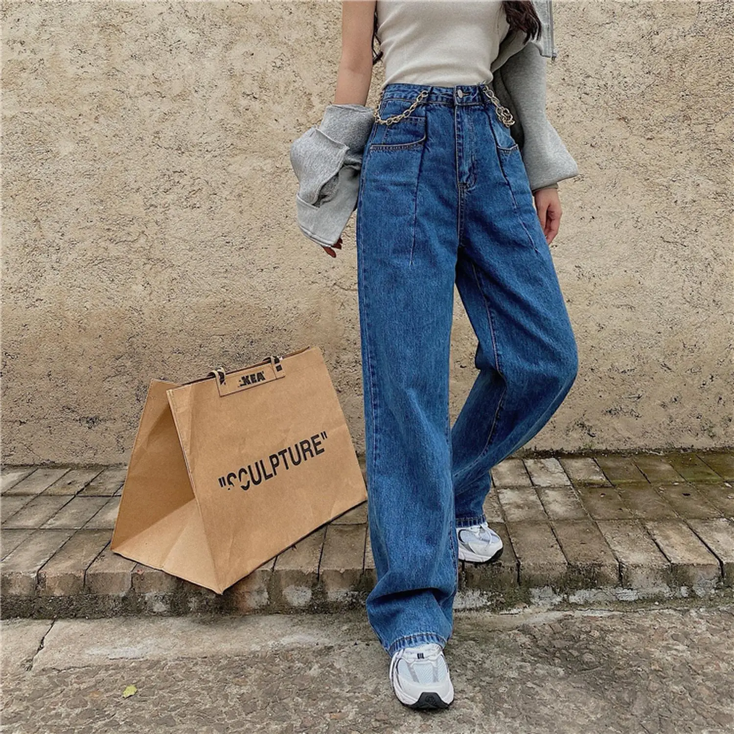 Mozuleva Women Denim Pants Casual Bottoms Cotton Wide-leg Jeans Trousers Autumn 2021 Spring High Waist Full length Pants femme