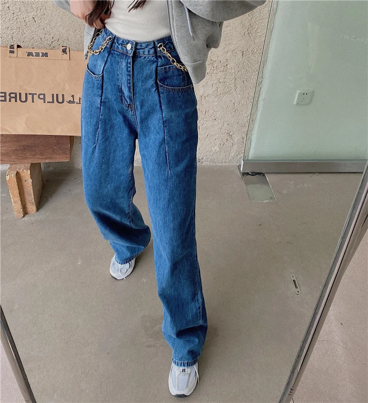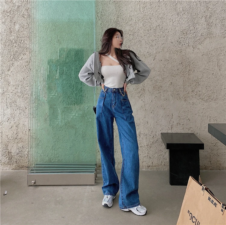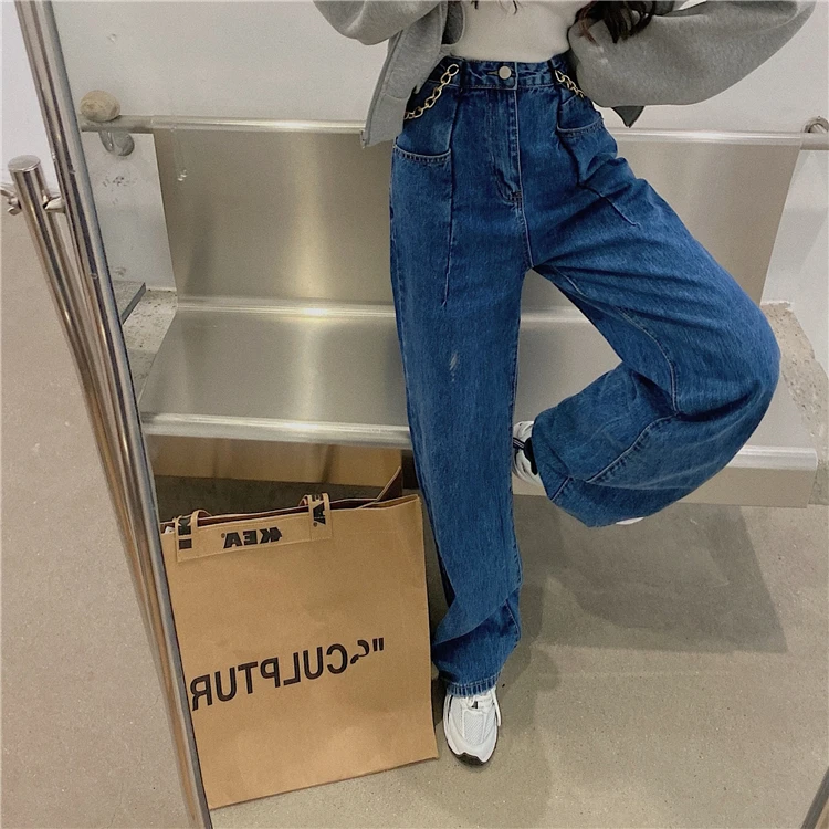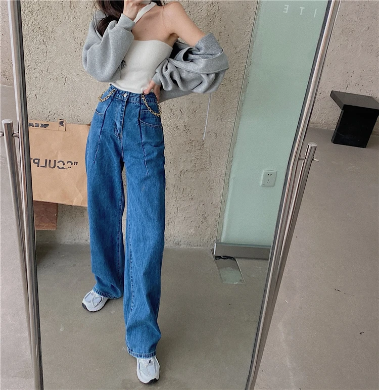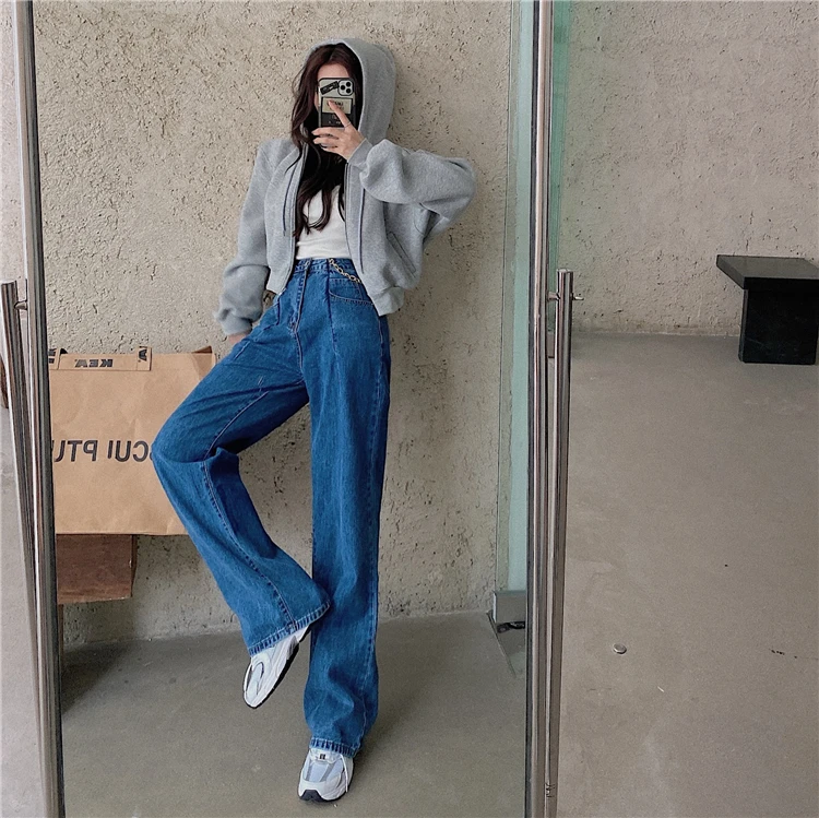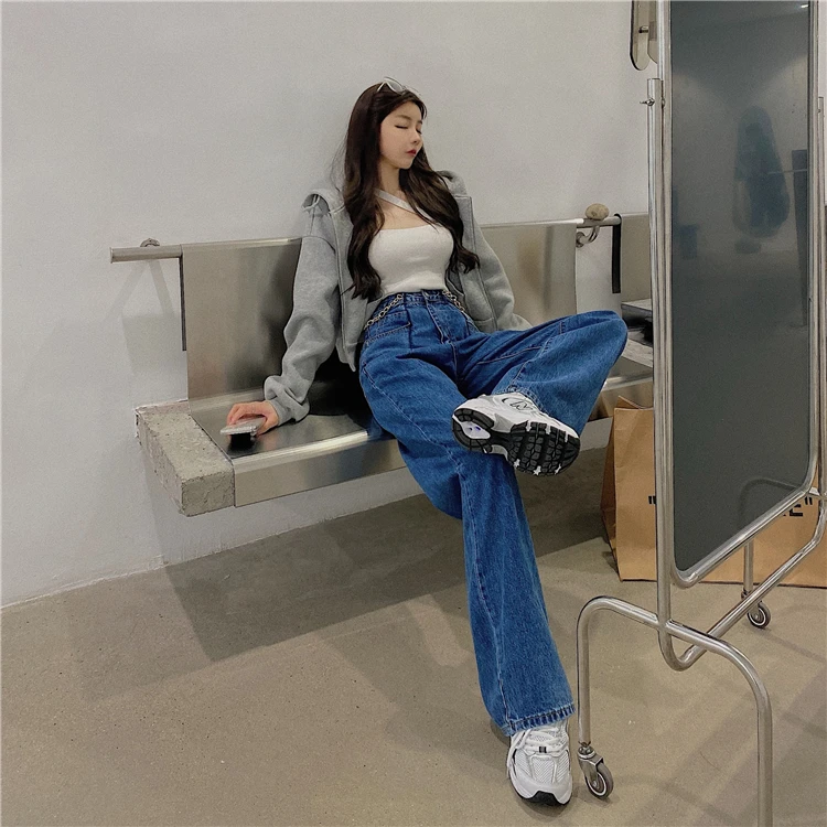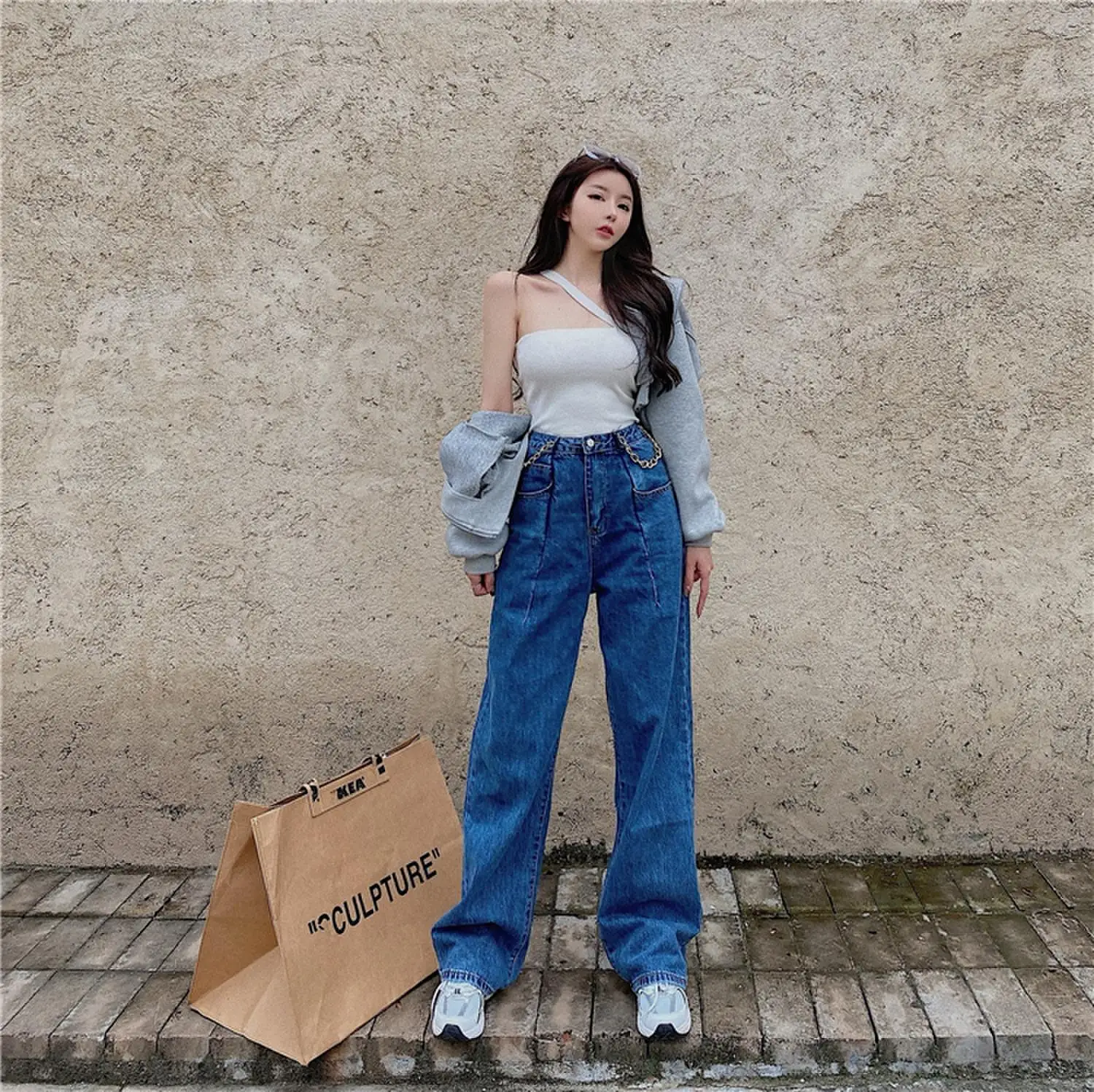 Mozuleva Women Denim Pants Casual Bottoms Cotton Wide-leg Jeans Trousers Autumn 2021 Spring High Waist Full length Pants femme