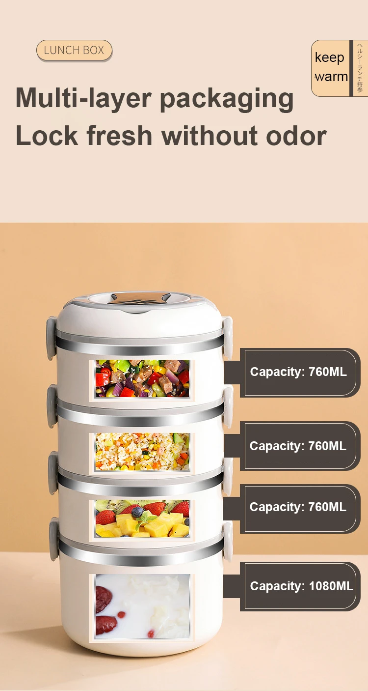 Multilayer Thermal Lunch Box Stainless Steel Portable Large Insulated Food Thermos Containers Commuting Office Children Lunch