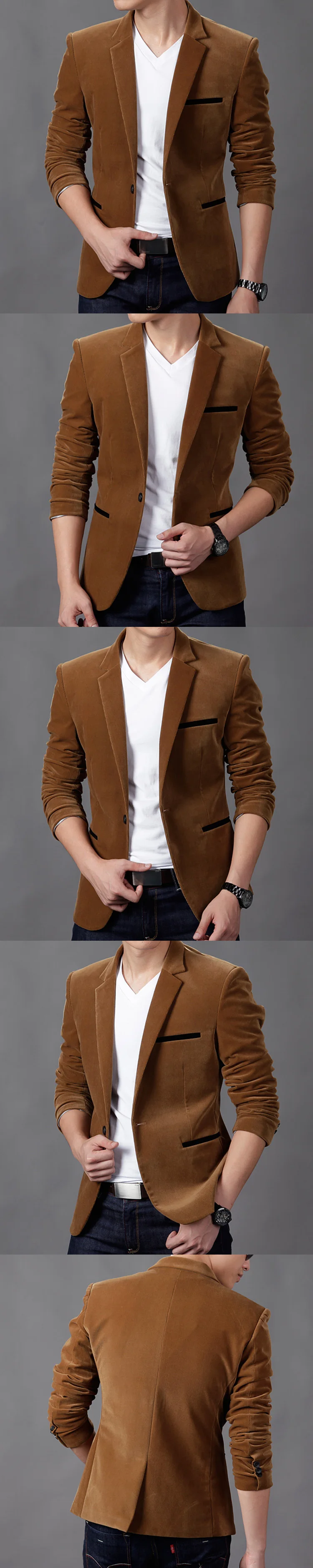 NEGIZBER 2020 New Brand Men's Suit Jackets Solid Slim Fit Single Button Dress Suits Men Fashion Casual Corduroy Blazer Men