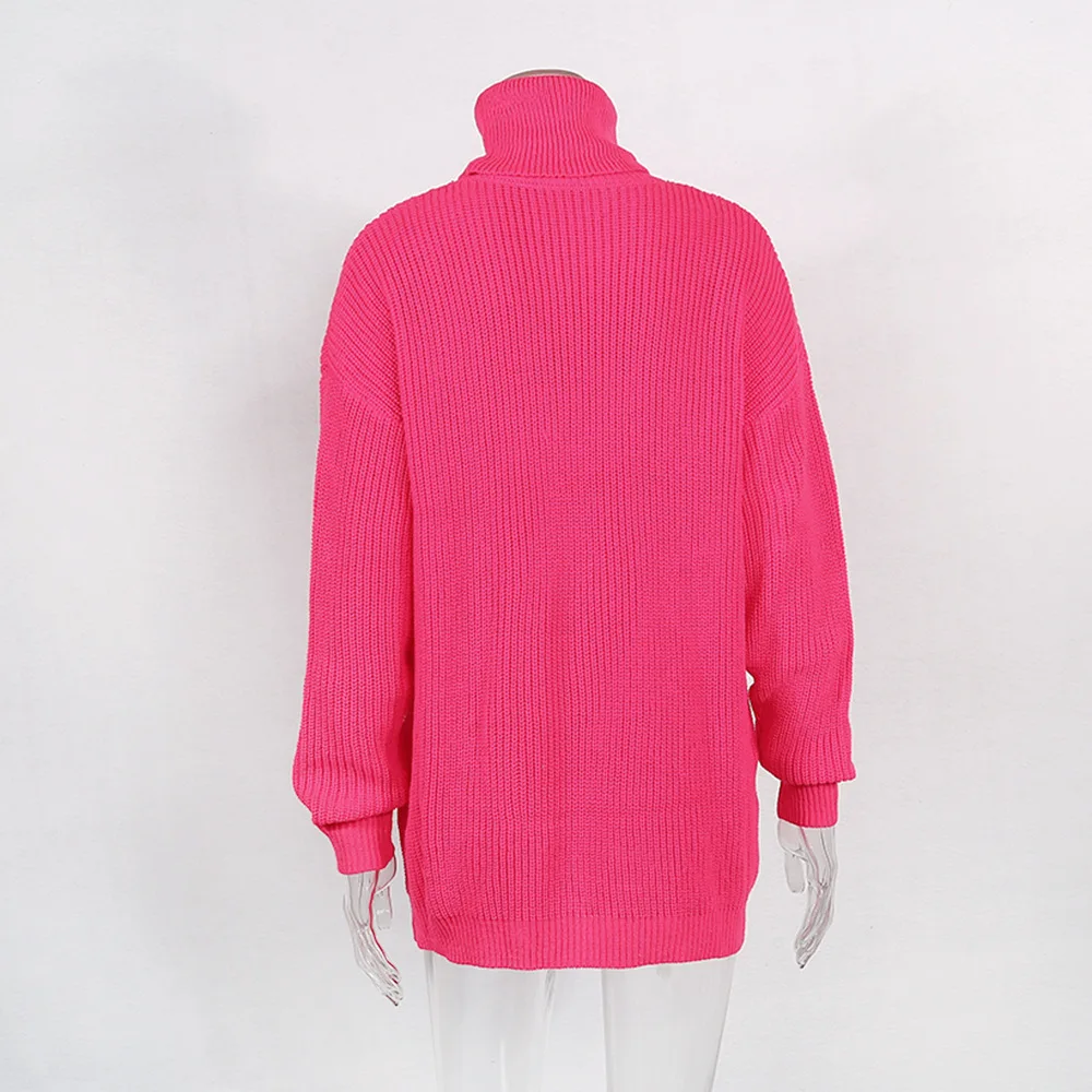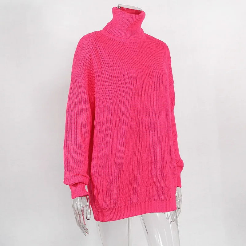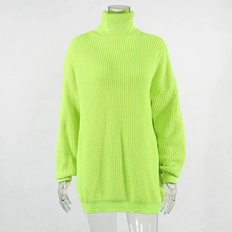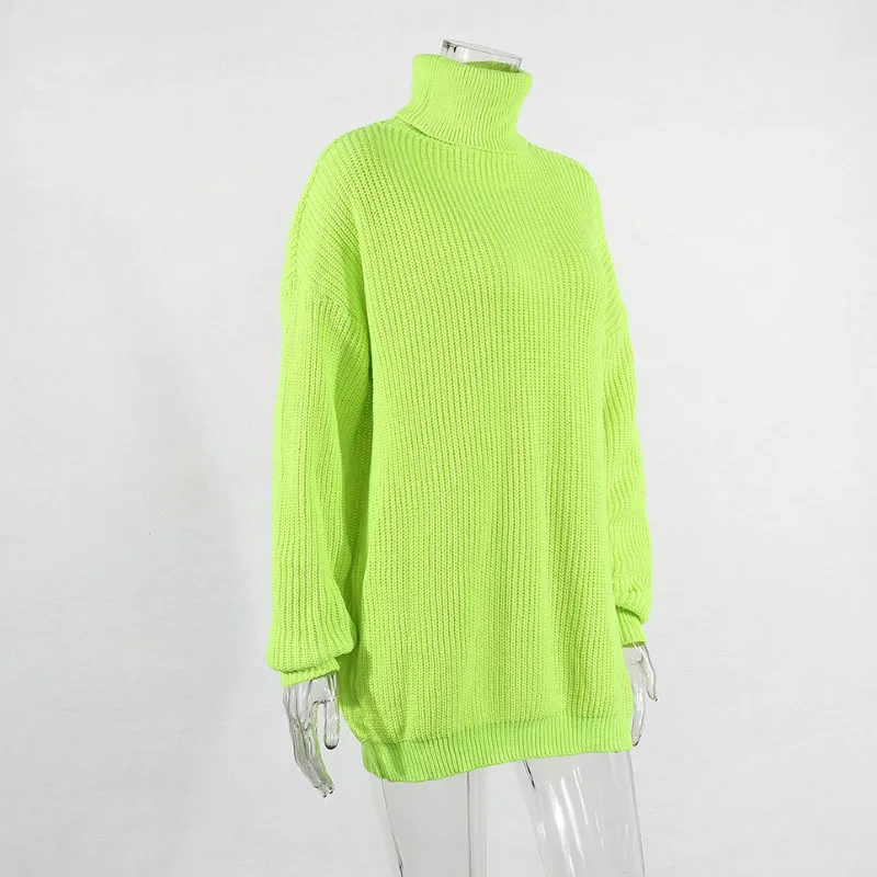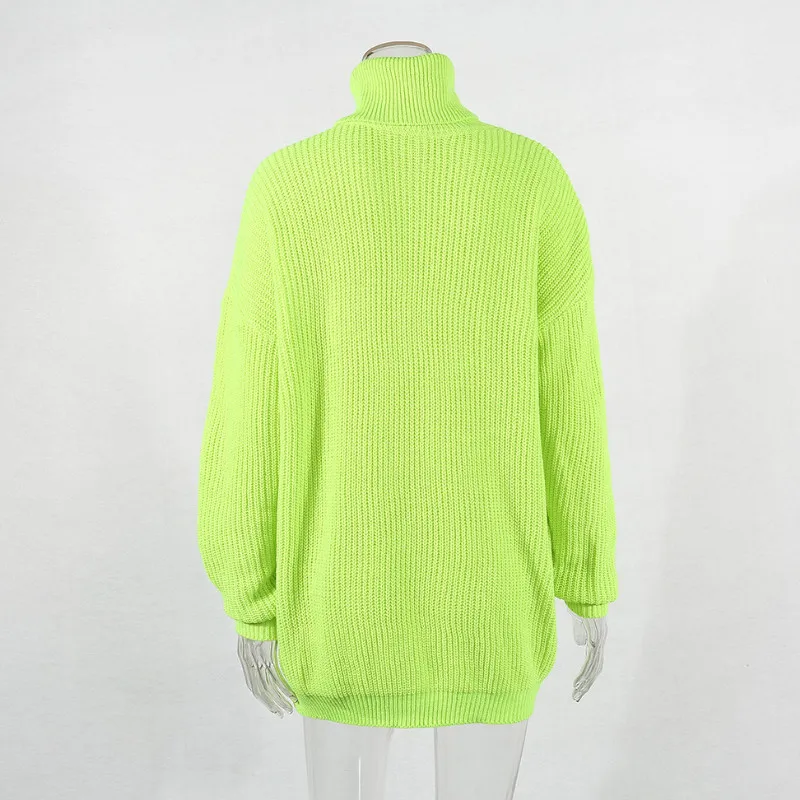 Neon Green Ribbed Turtleneck Sweaters Female Loose Long Sleeve Pullovers Knit Women Winter Autumn Oversized Long Sweaters GV969