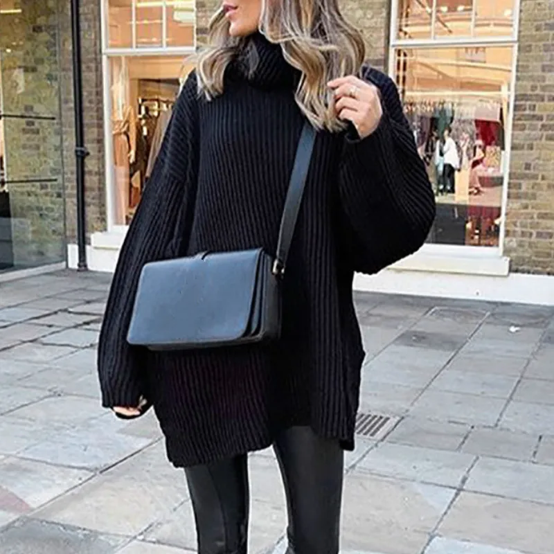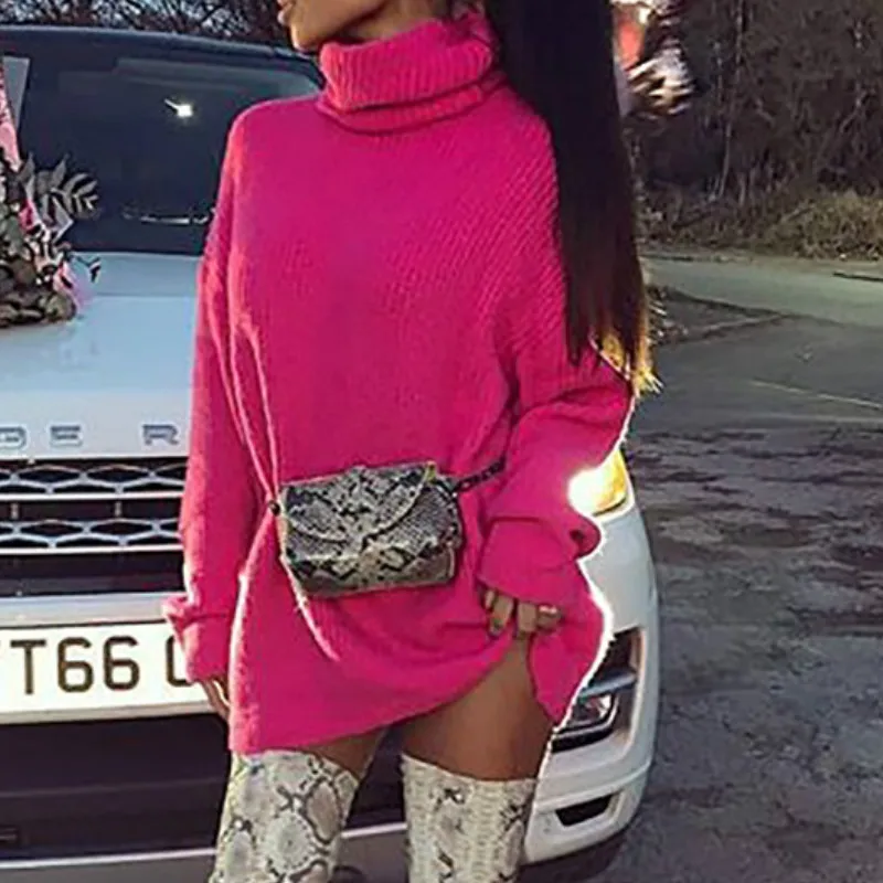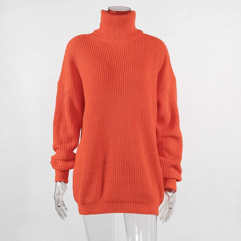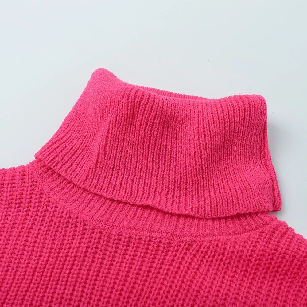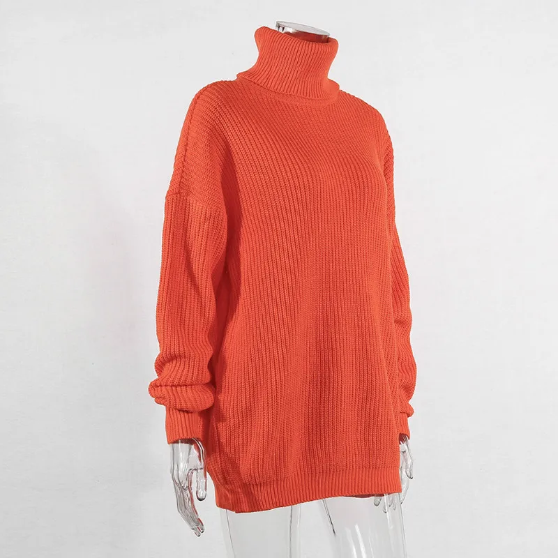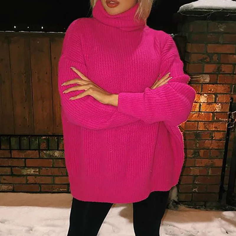 Neon Green Ribbed Turtleneck Sweaters Female Loose Long Sleeve Pullovers Knit Women Winter Autumn Oversized Long Sweaters GV969