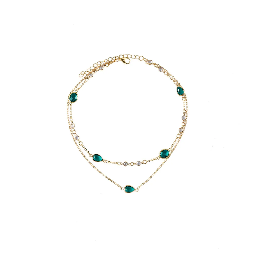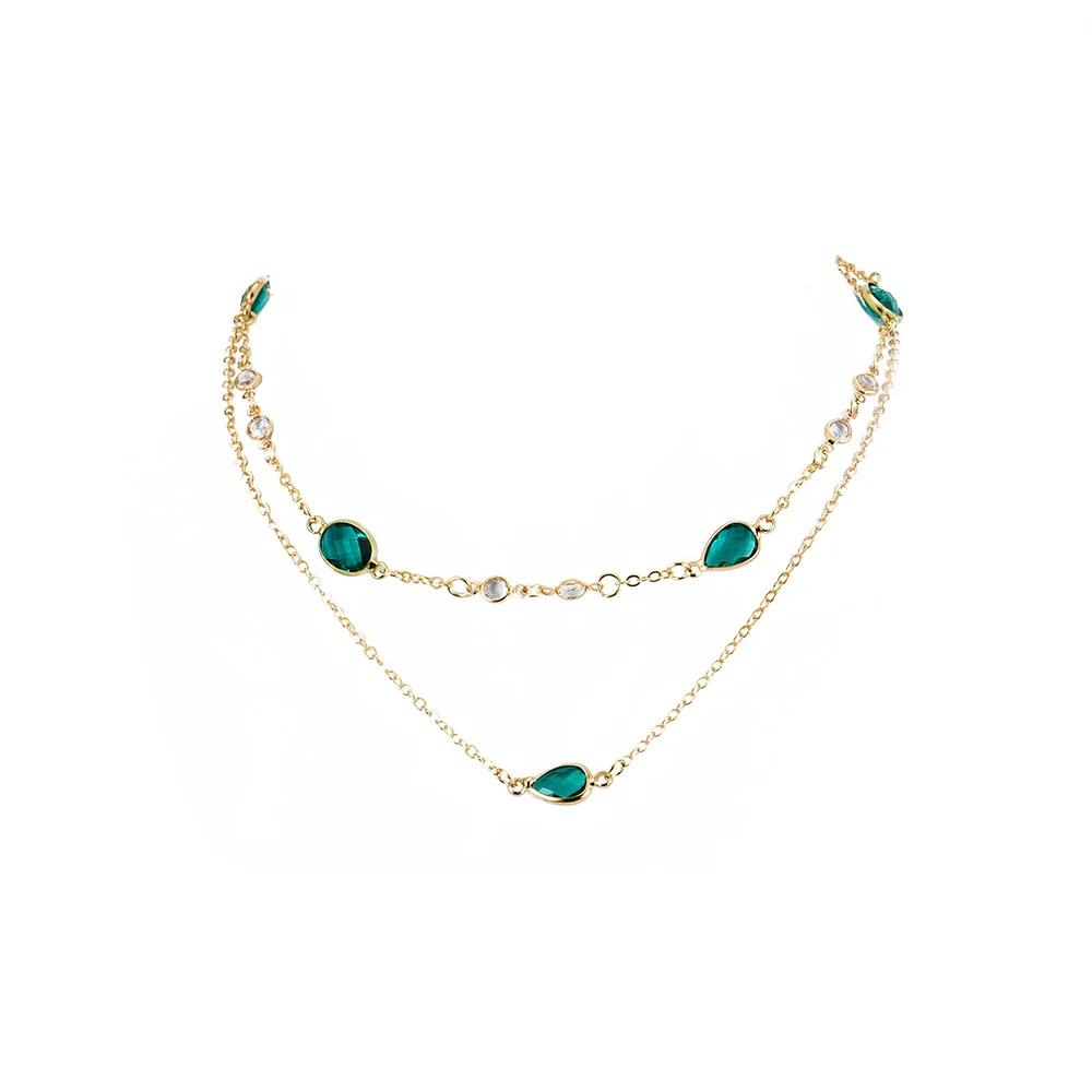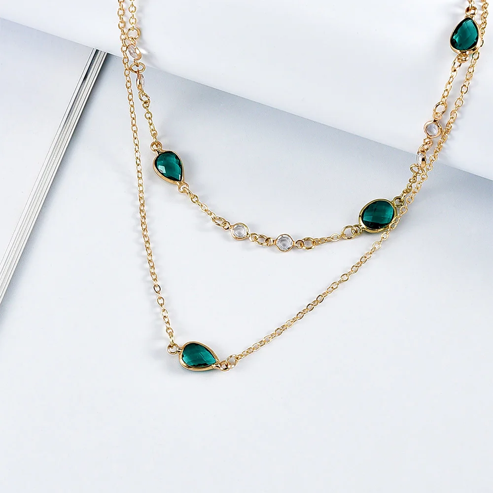 New 2020 Fashion Gold Green Water Drops Stone Pendant Necklaces For Women Necklace Multilevel Female Boho Vintage Jewelry Gift