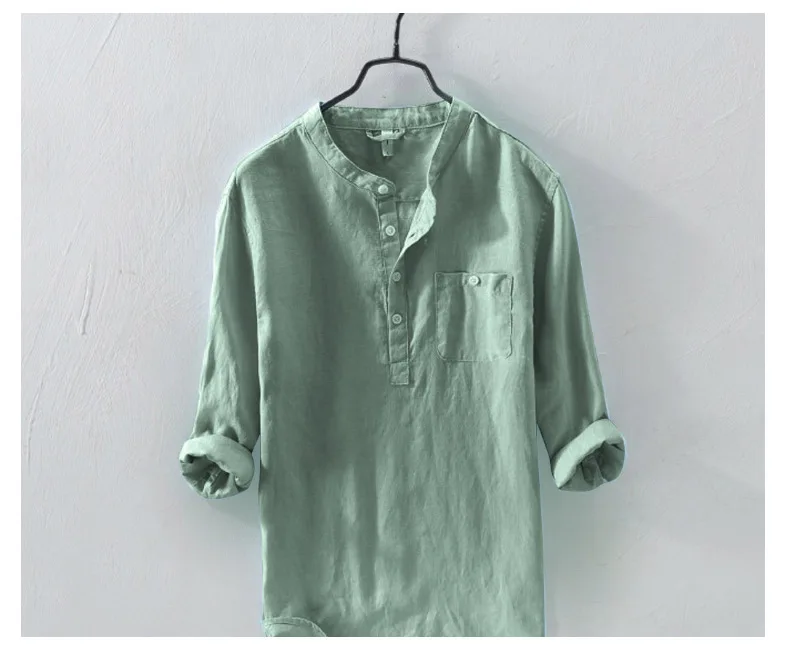New 2022 Cotton Linen Mens Long-sleeved T Shirts Fashion Urban Stand-up Collar Solid Color Male Casual Breathable T Shirts Tops