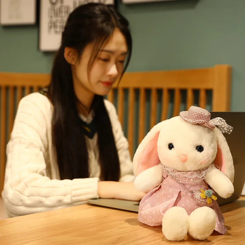 Plush Dressed Rabbit Toys Stuffed Soft Animal Dolls For Baby Girls Gifts