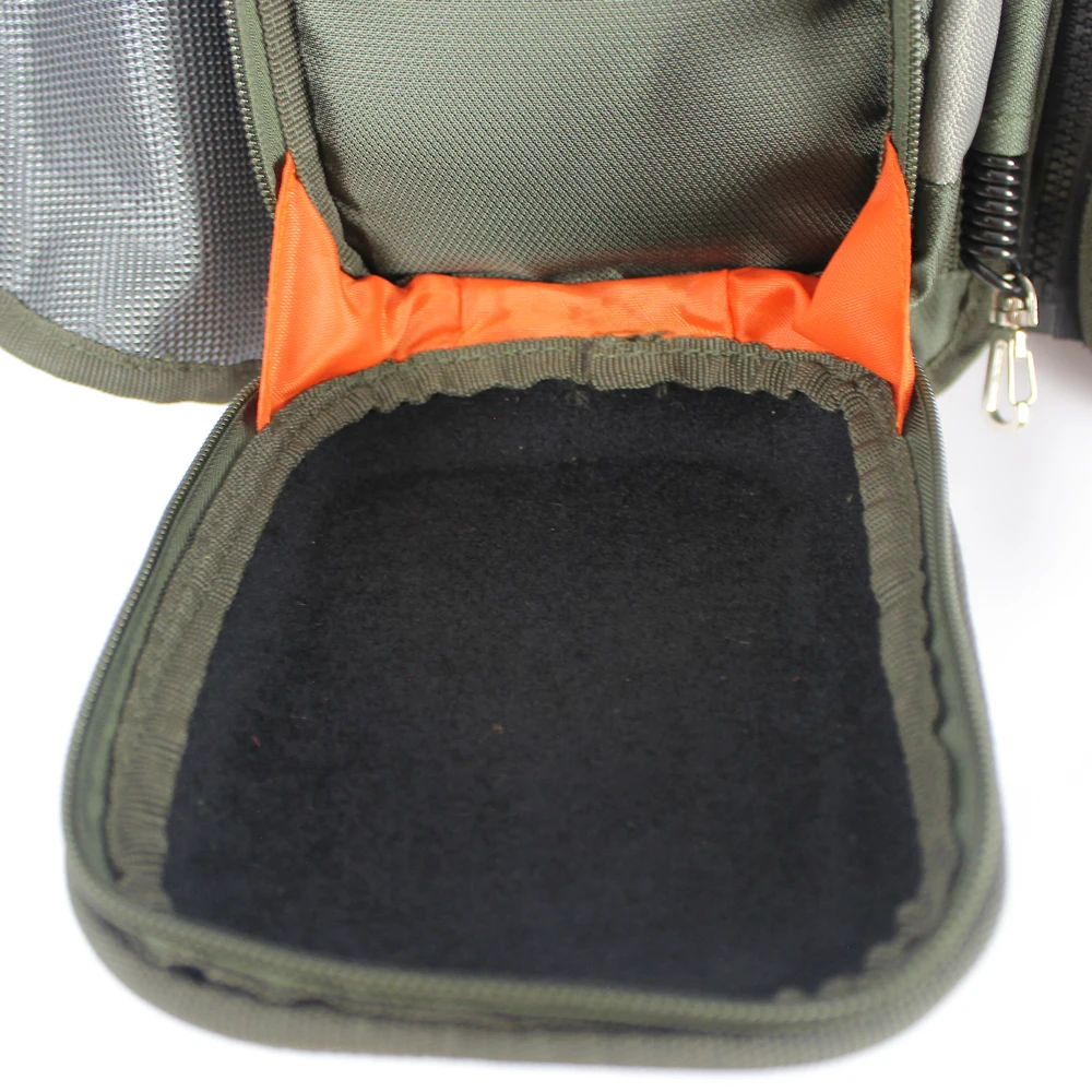 Ideal for all types of fishing by combining both a traditional fishing vest and  versatile backpack  to provide all the functionality you will ever need on any fishing trip! This fly fishing backpack is equipped including: 2 hard shell fly compartments, Two main molded pocket to hold and protect your flies . Plenty of pockets for storing a lot of gear and keeping it protected and organized.and Expandable main zippered three compartments backpack for storing fishing gear.Multiple sturdy zip compartment provides multiple function.  This fly fishing vest allows you to have your tools at your fingertips without having to dig through pockets or tackle boxes with 2 retractable swivel tethers perfect for pliers or clippers and a built in rod holder so you can work on your rig with two free hands! Lightweight water resistant nylon paired with breathable mesh will allow you to safely store your fishing gear, wallet, cell phone and car keys all in one comfortable and easy to use fly fishing vest pack!Adjustable One-size-fit-all size,With soft, padded material, and multiple points for adjustment,Mesh backing make you feel more comfortable, It is not overly bulky or heavy ,the design of the straps provides added support. this fly fishing backpack will fit great and keep you comfortable during all of your fishing trips! (One-size-fits-all).