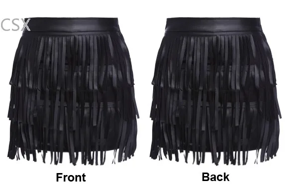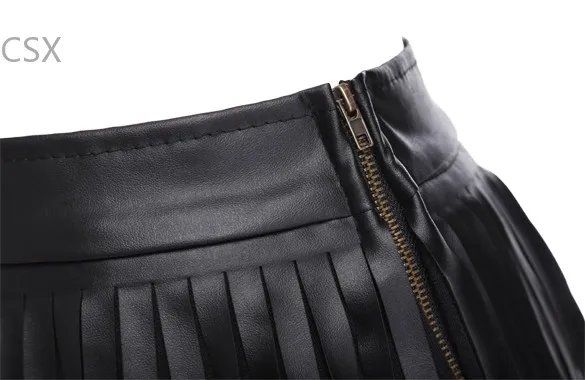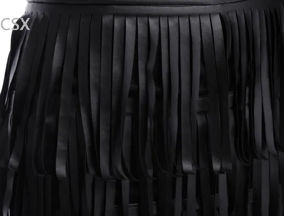 New Arrive Fashion Women Short Skirts Female High Waist Faux Leather Soft PU Skirts With Tassels Multi Size