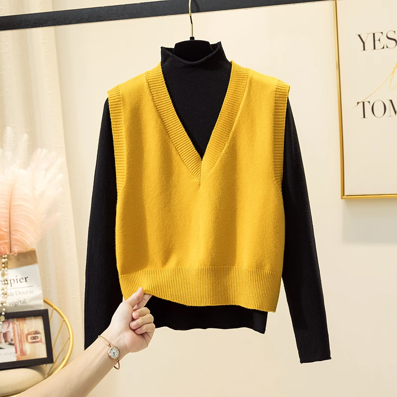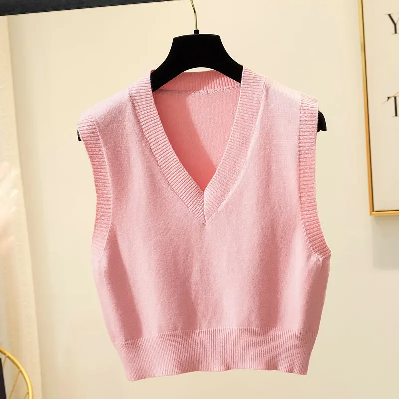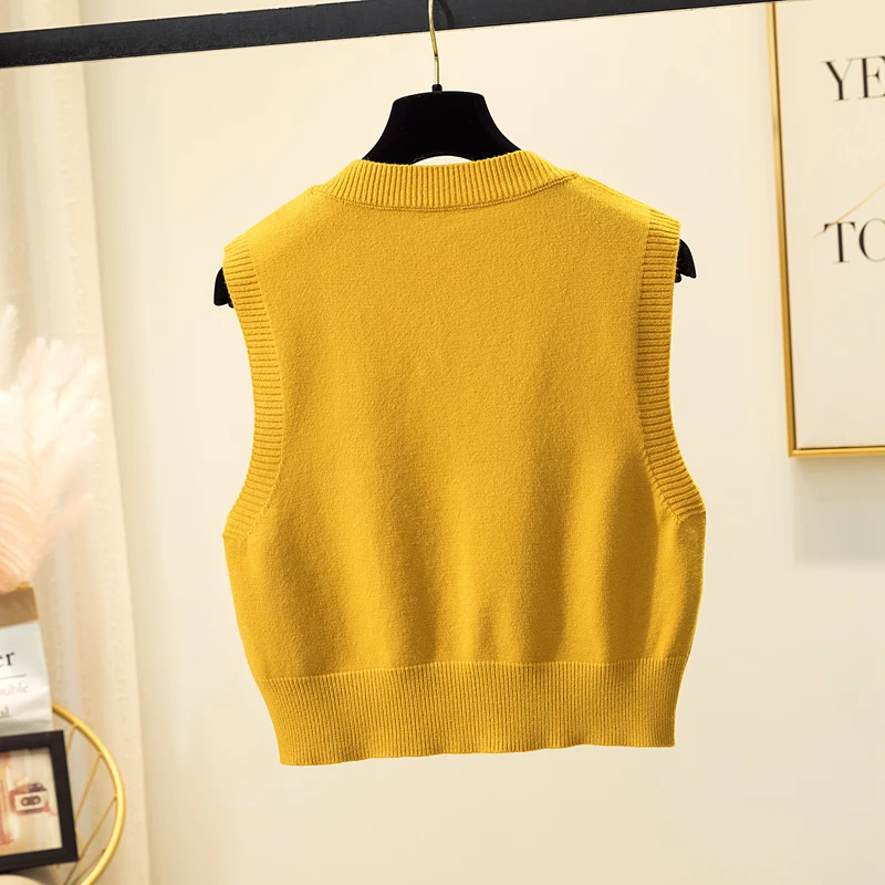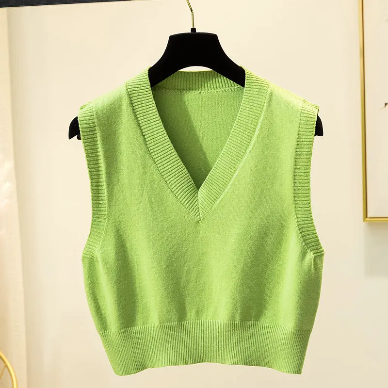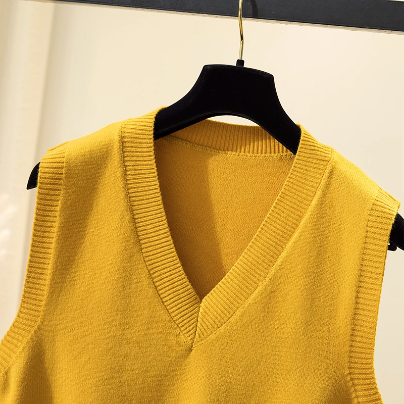 New Autumn V-neck Knitted Sweaters Vests Korean Fashion Sleeveless Top Solid Vest Waistcoat Outer Wear Woman Sweaters 2020
