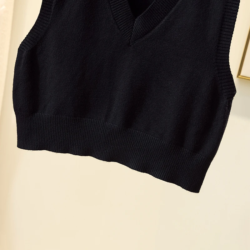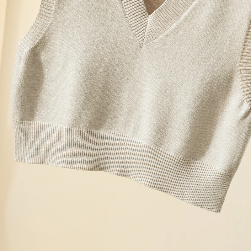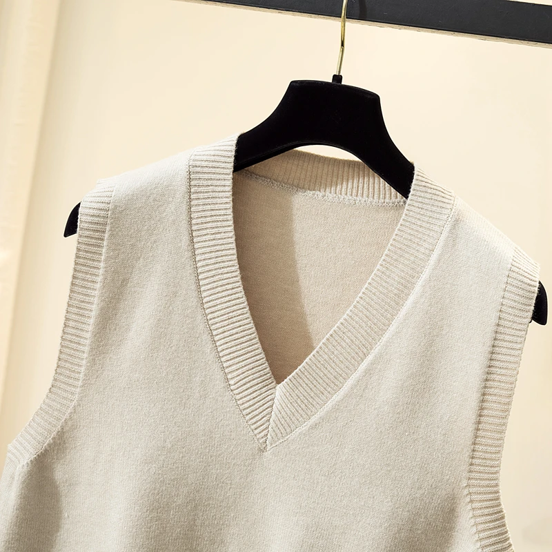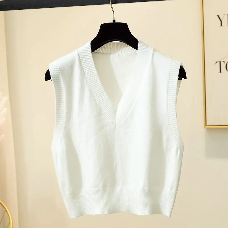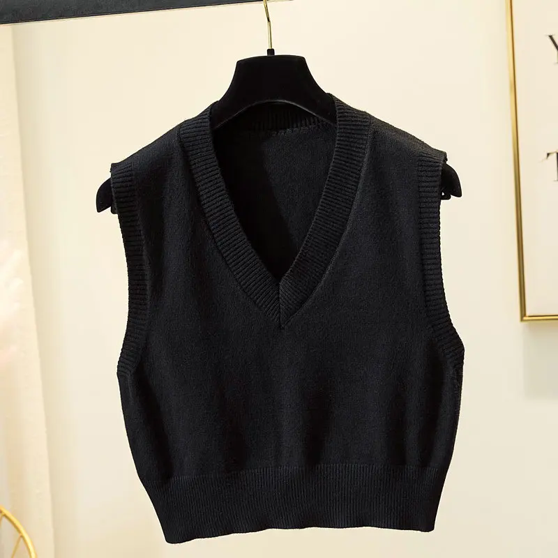 New Autumn V-neck Knitted Sweaters Vests Korean Fashion Sleeveless Top Solid Vest Waistcoat Outer Wear Woman Sweaters 2020