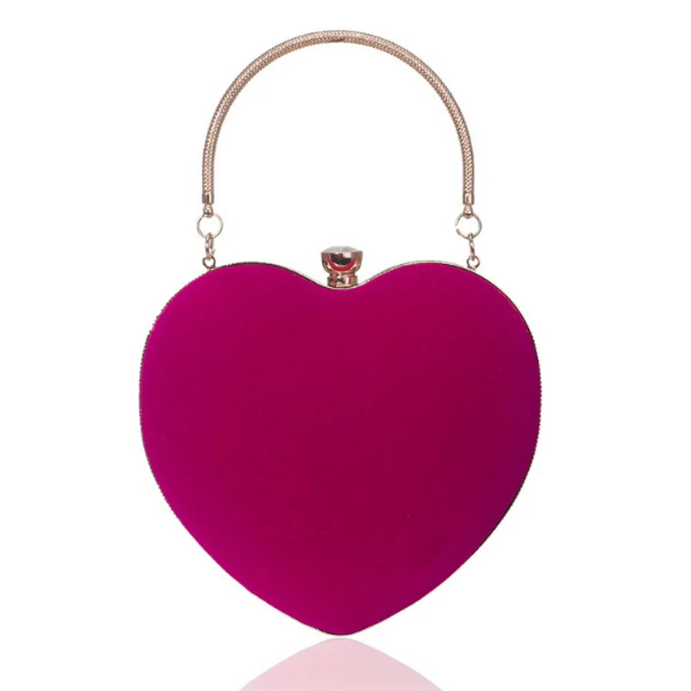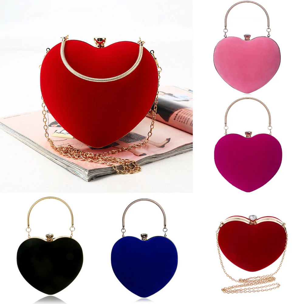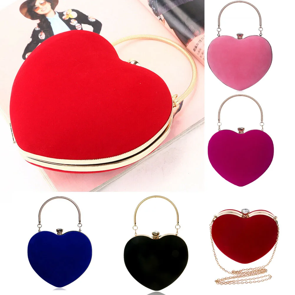 NEW Black Blue Red Women Suede Heart-shaped Handbags Evening Clutch Bag Party Prom Club