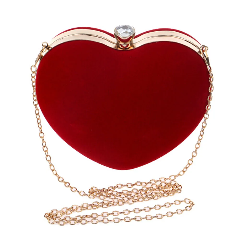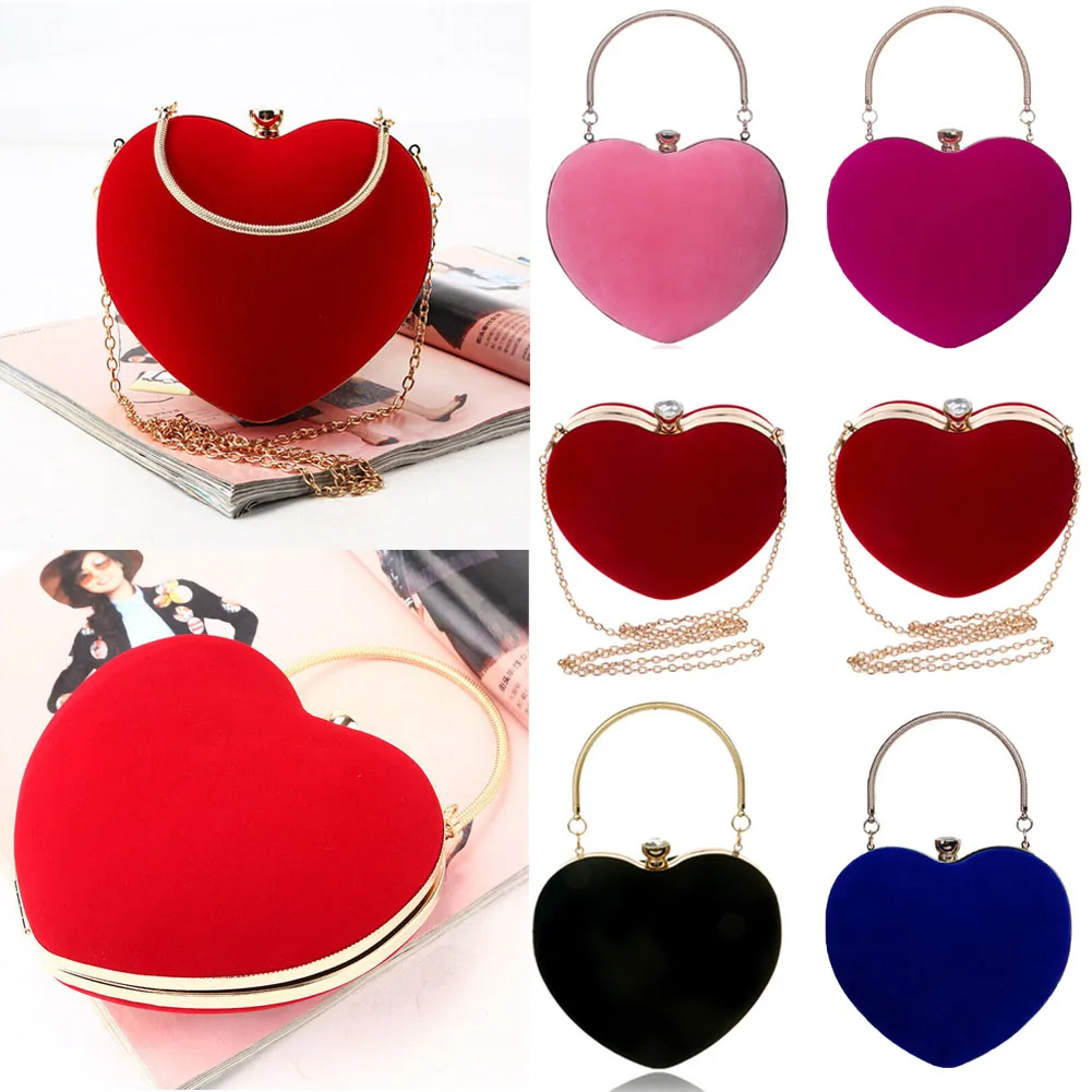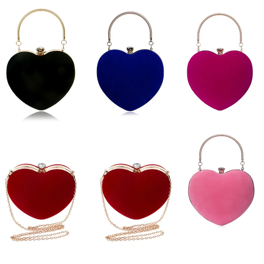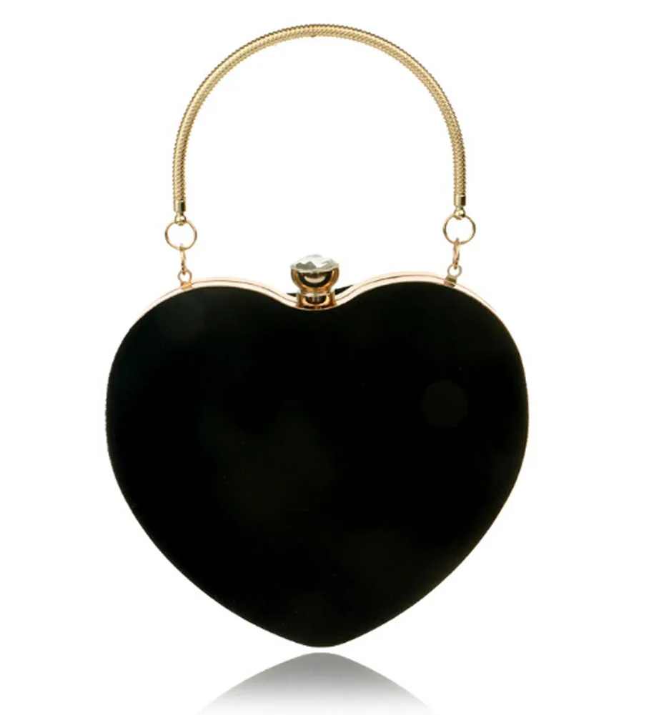 NEW Black Blue Red Women Suede Heart-shaped Handbags Evening Clutch Bag Party Prom Club
