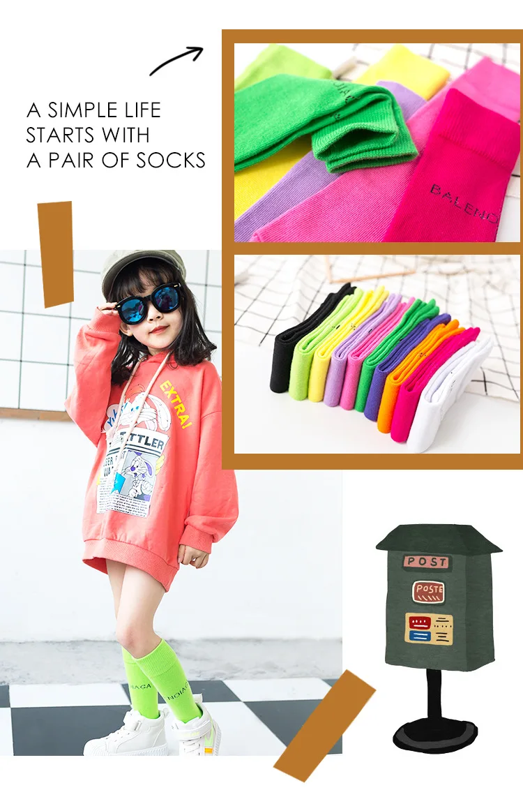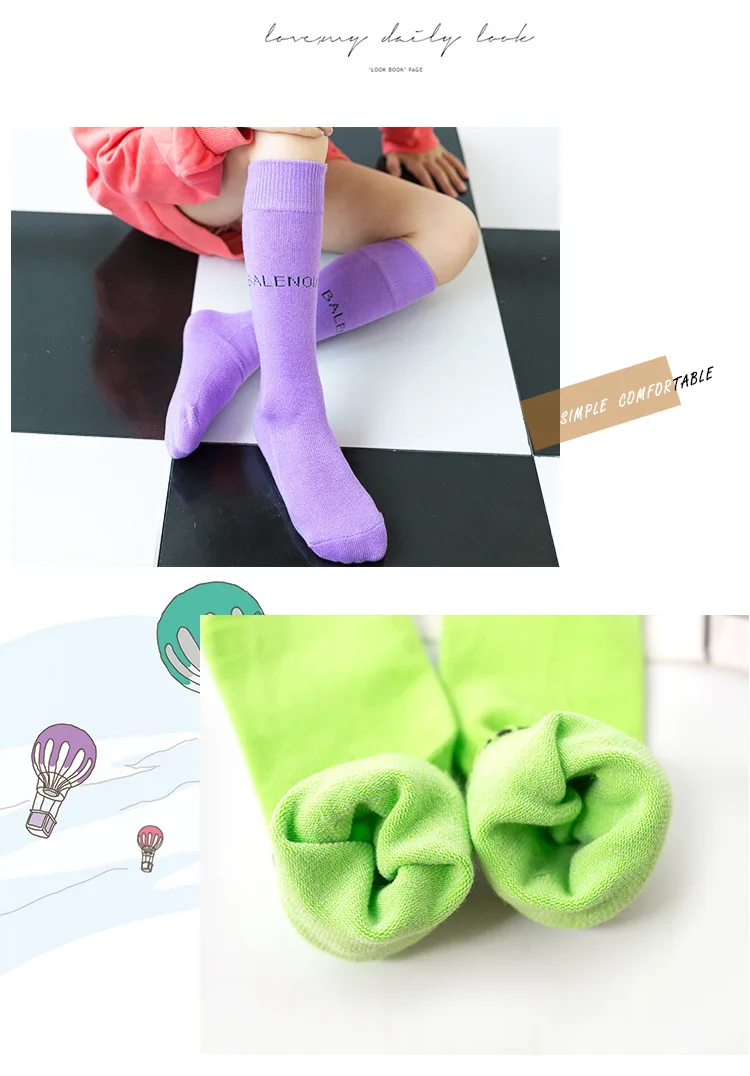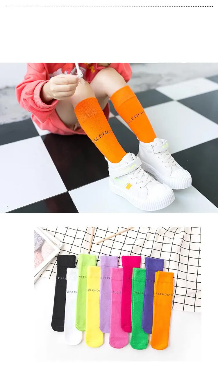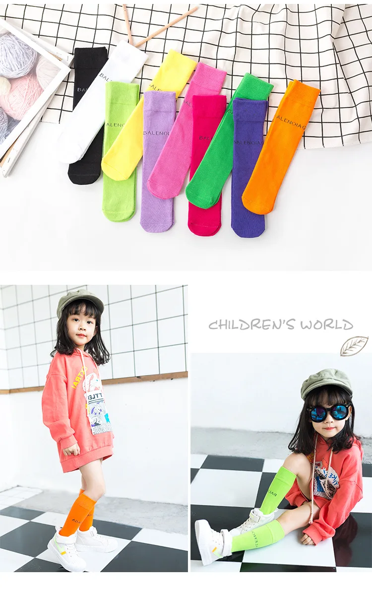 New Children's Socks Candy Color Fashion Cotton For Boys And Girls General Solid Color Pile Sock High Long Leg Socks Skate socks