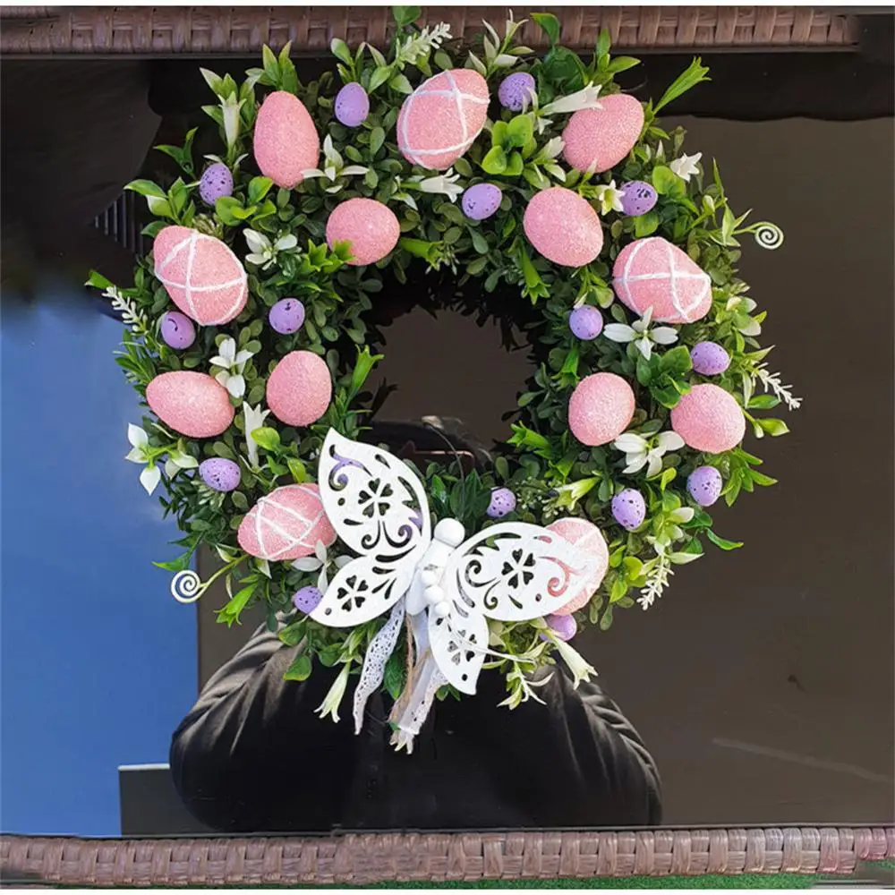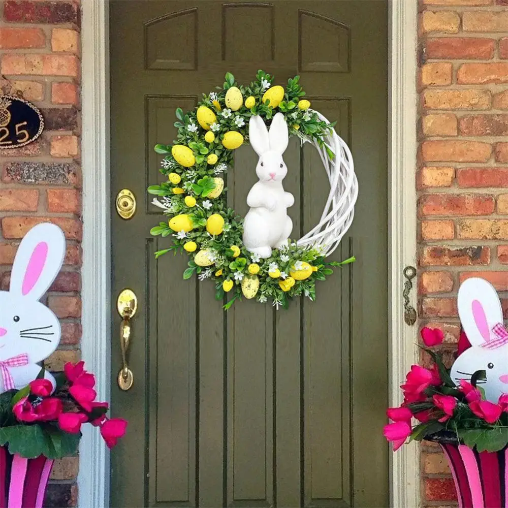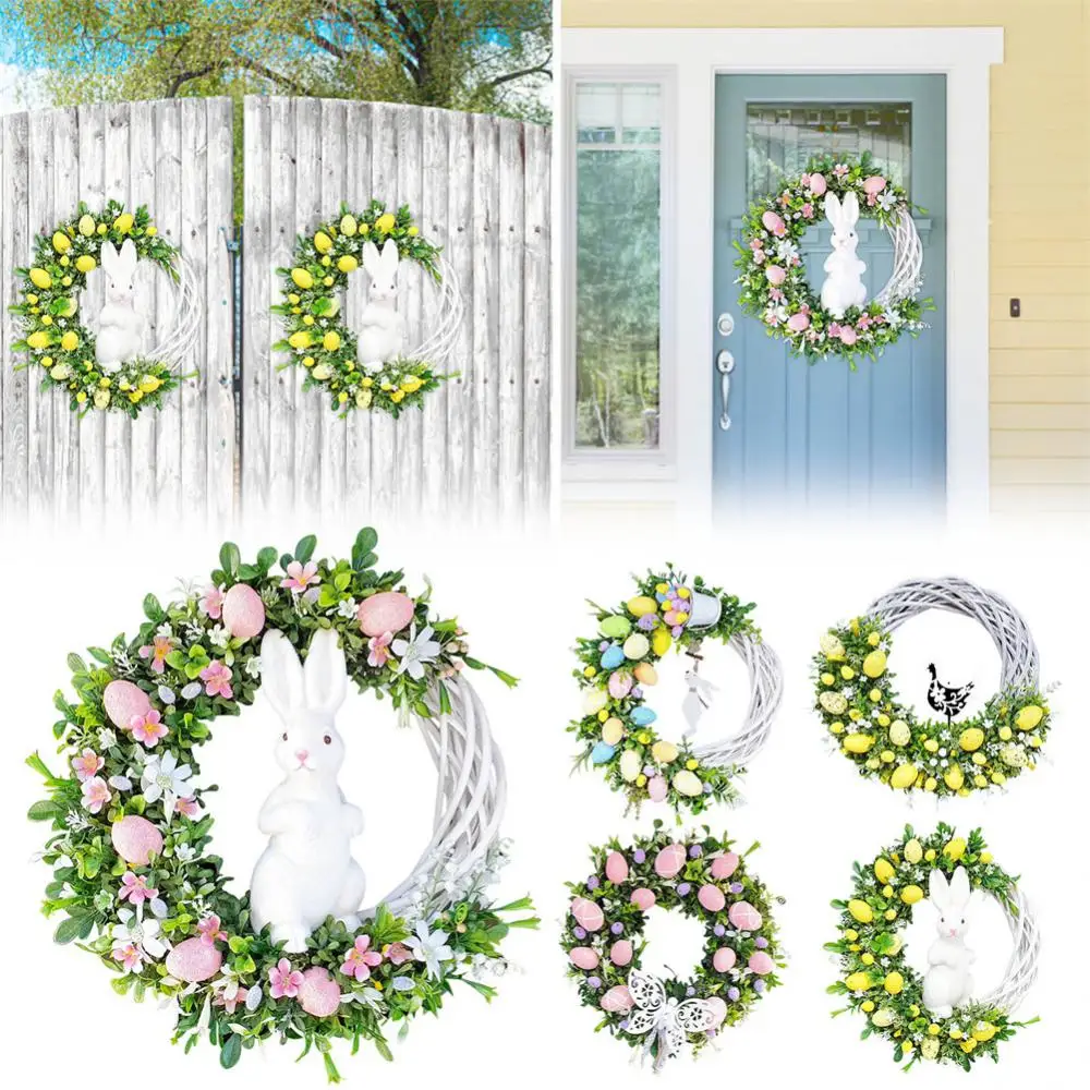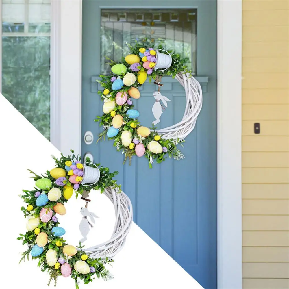 New Easter Bunny Wreath Colorful Door Wall Oranments Happy Easter Rabbit Home Party Creative Garland Festival Decoration