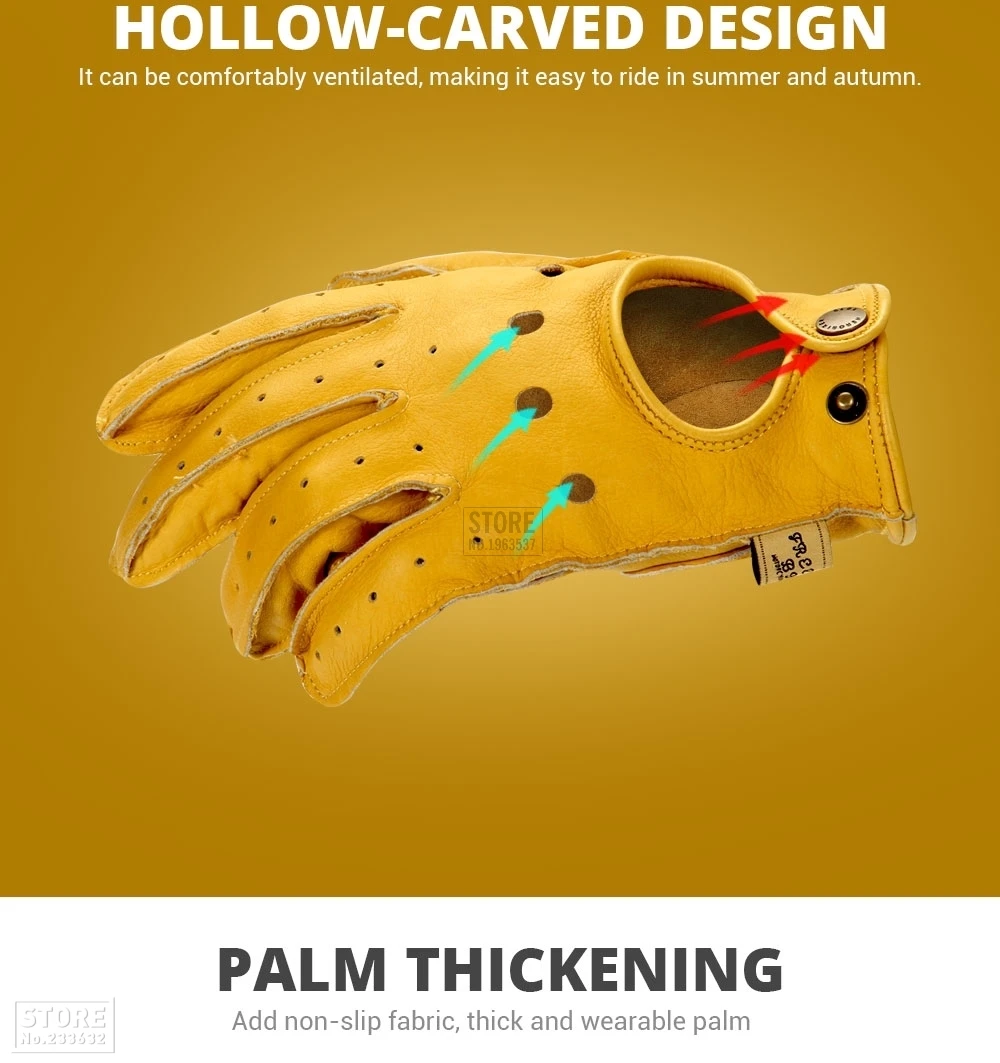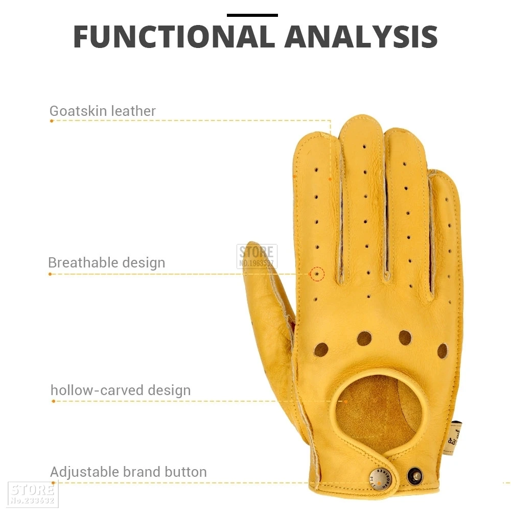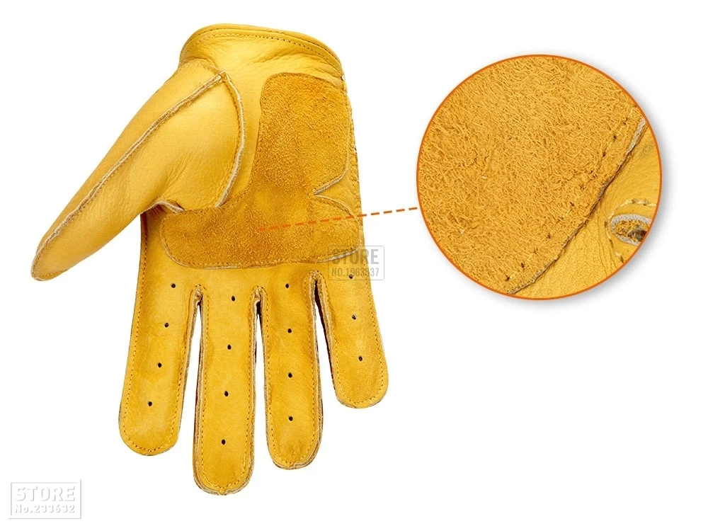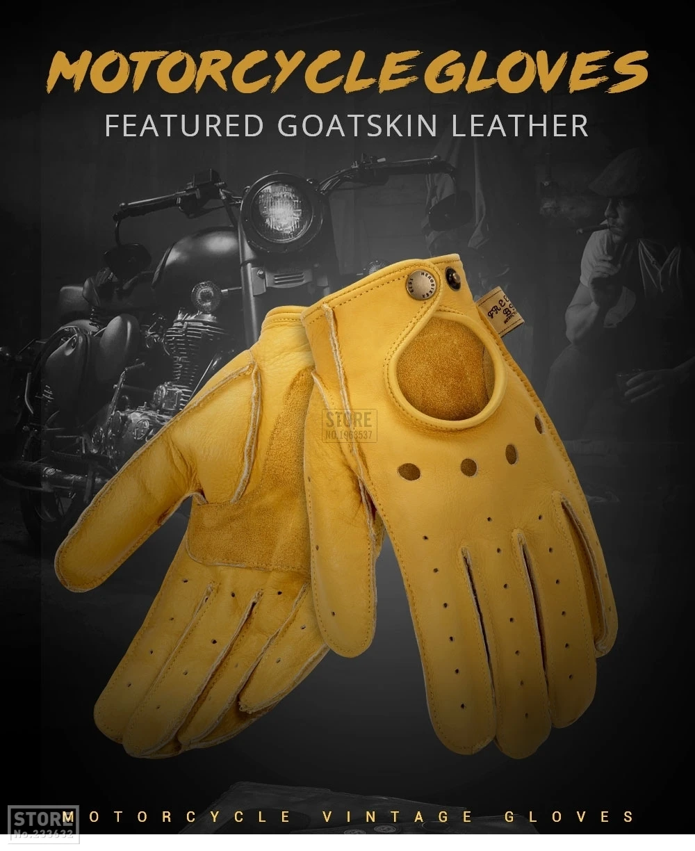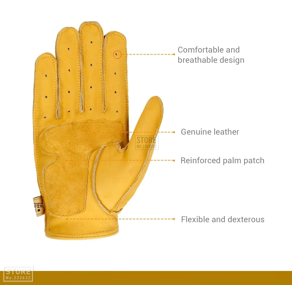 New Genuine Sheepskin Leather Motorcycle Gloves Men Vintage Motorbike Full Finger Gloves Retro Biker Touchscreen Moto Gloves