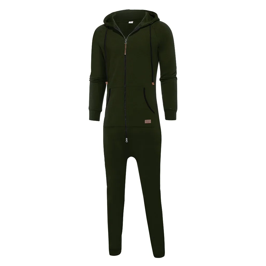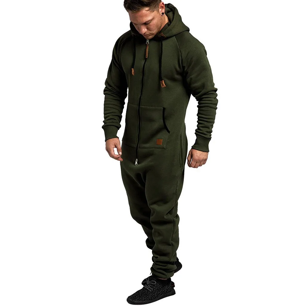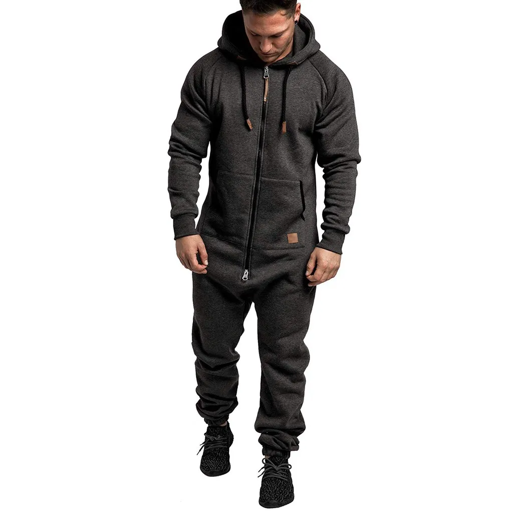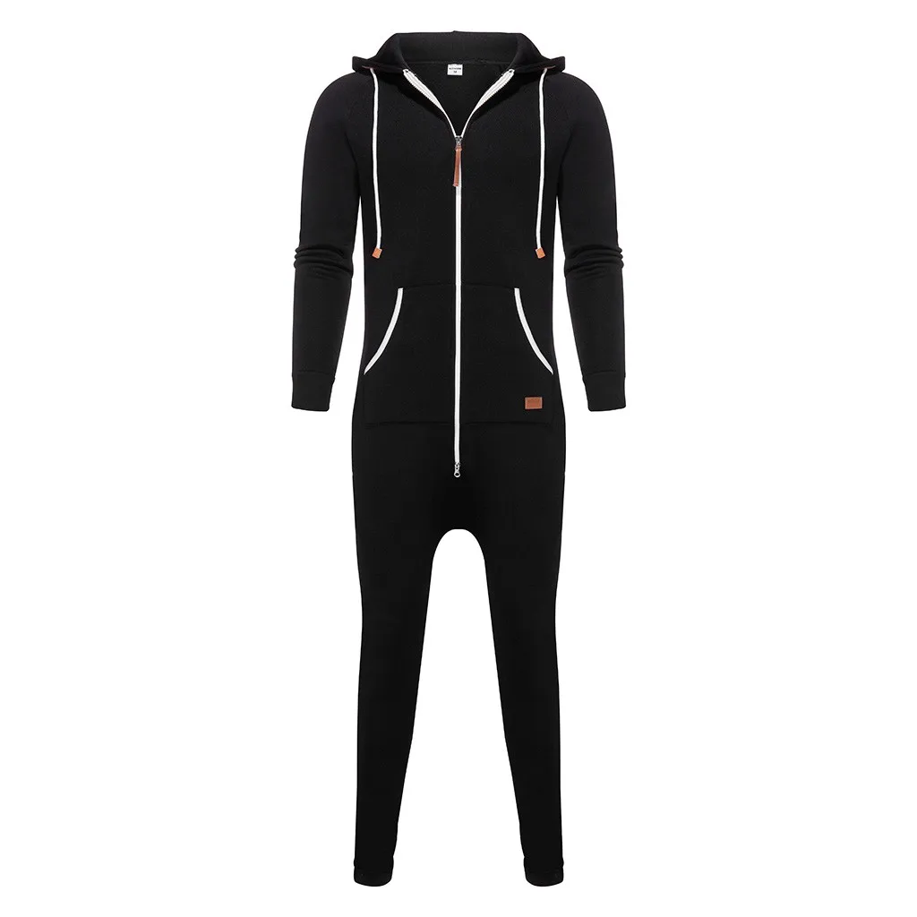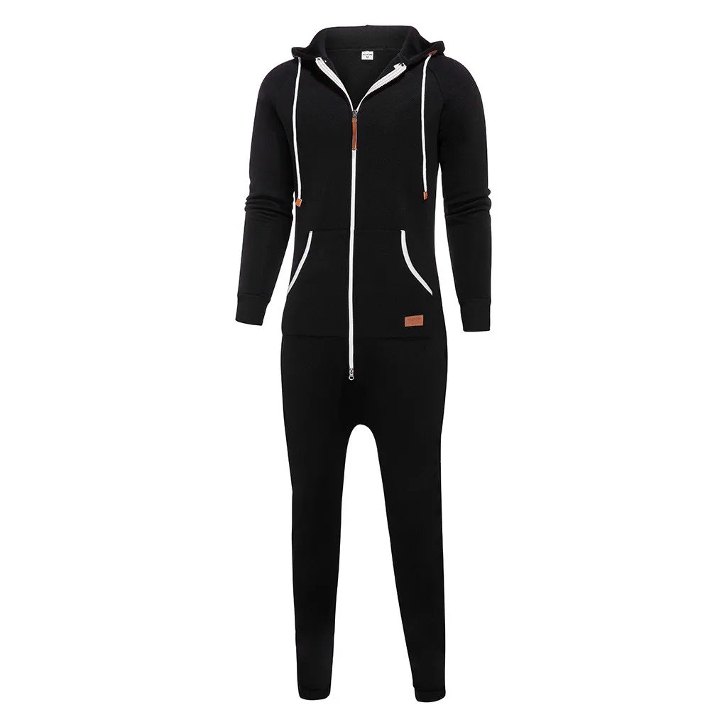 New Men's Jumpsuits One-piece Garment Pajama Streetwear Men Pure Color Splicing Autumn Winter Casual Hoodie Zipper Jumpsuit