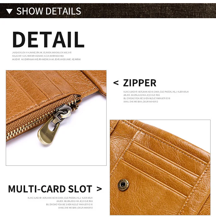 New Men's Wallet RFID Anti Theft Short Zipper Three Fold Business Card Holder Money Bag Purse Genuine Leather Wallet Male