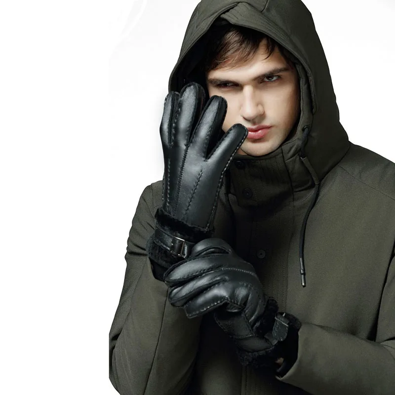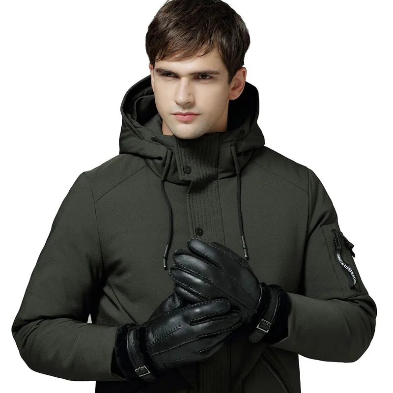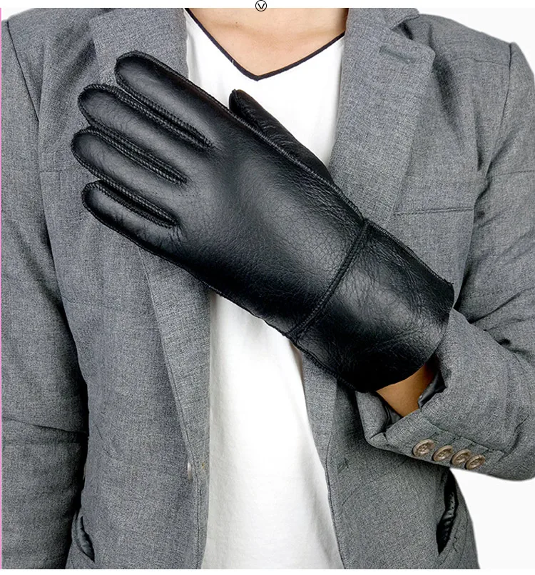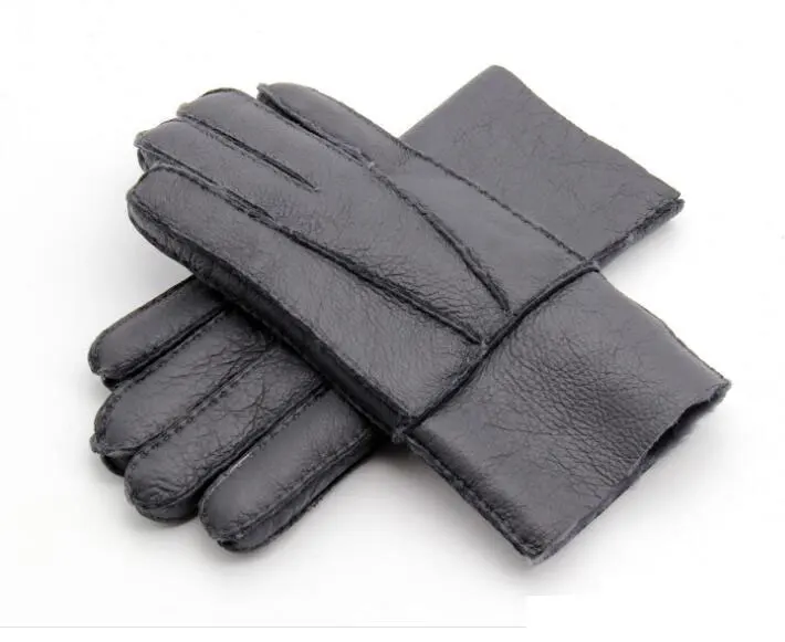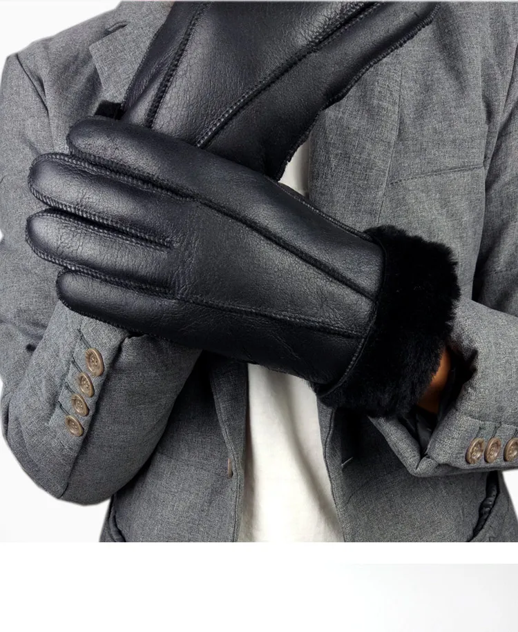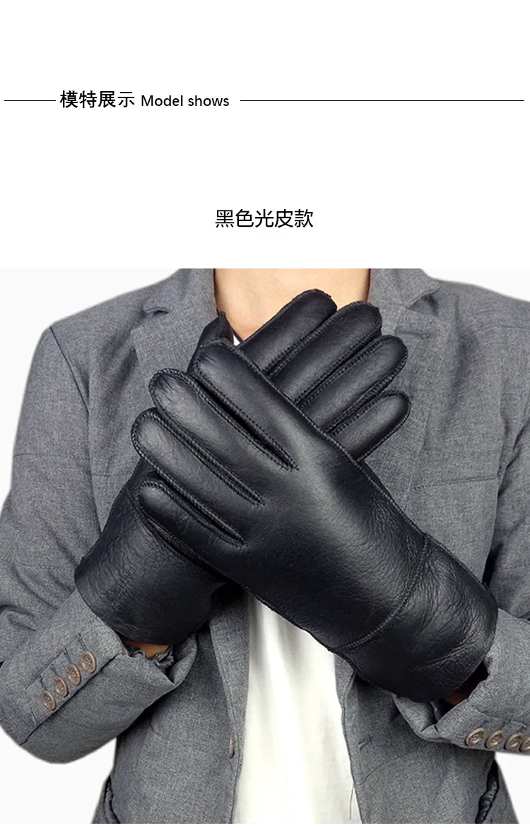 New Men Winter Gloves Warm Genuine Sheep Fur Gloves for Men Thermal Goat Fur Cashmere Real Leather Leather Snow Gloves Manual