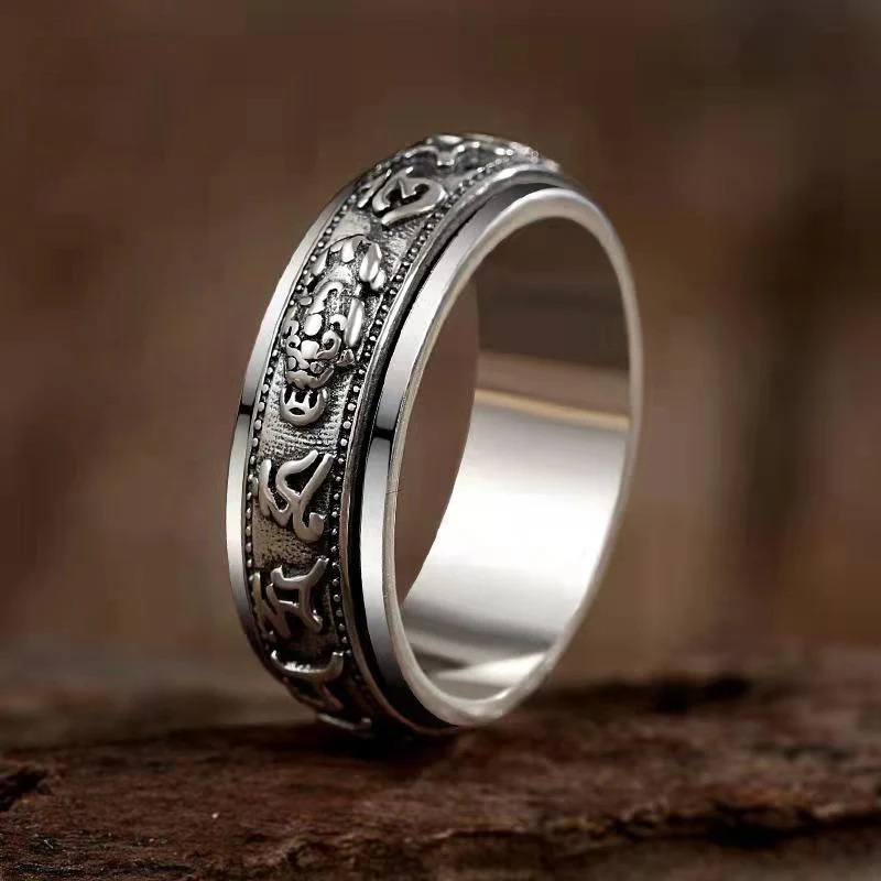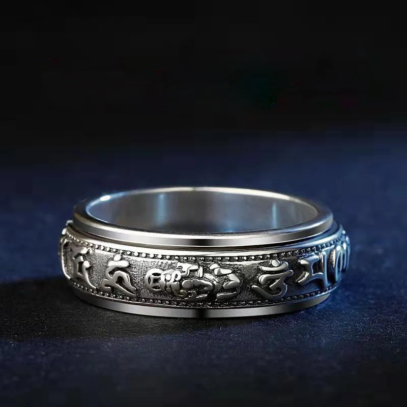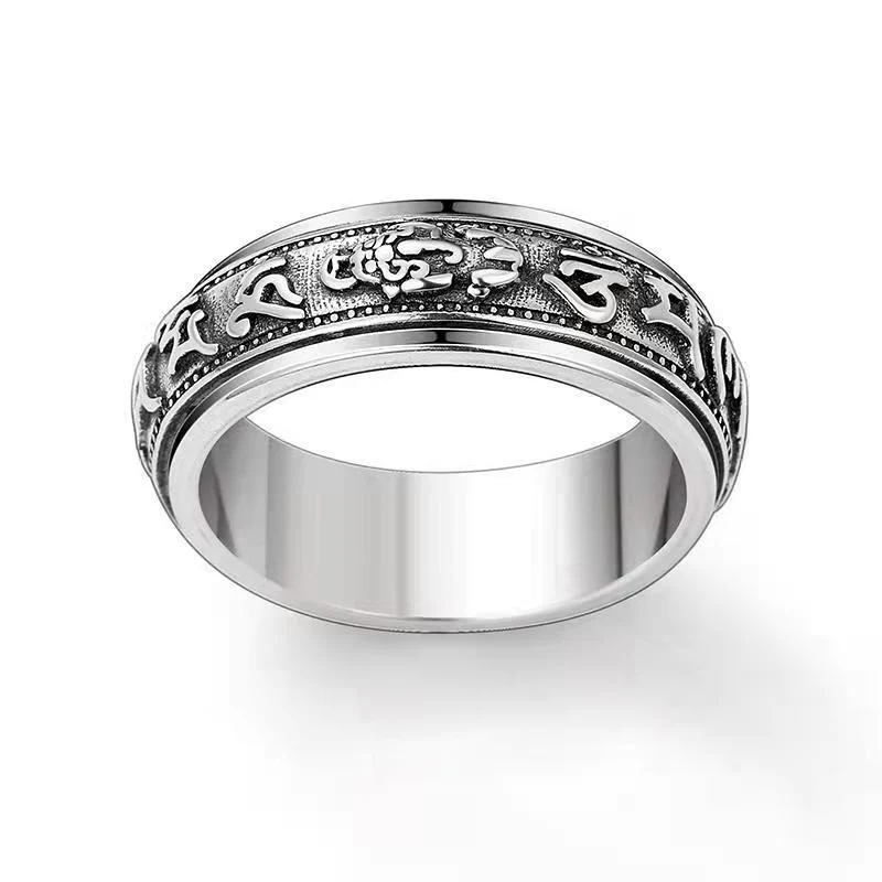 New Retro Six-character Mantra Men's Brave Ring Rotatable Ring Trendy Personality Jewelry Accessories