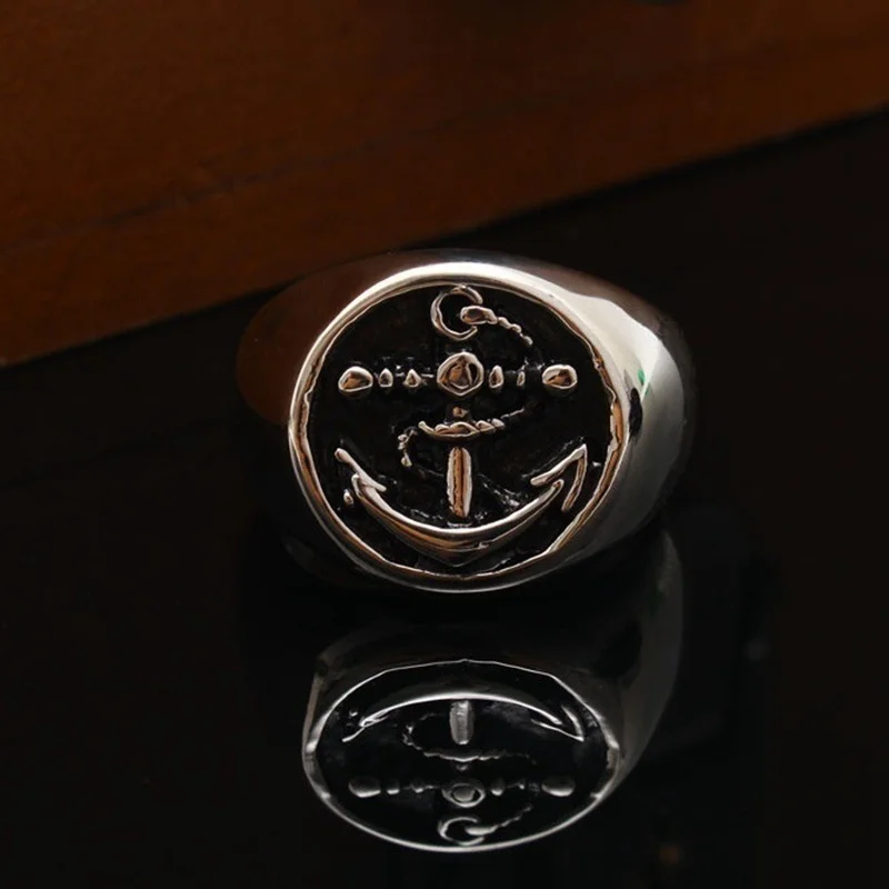 New Trendy 316L Stainless Steel Viking Pattern Ring Men's Ring Fashion Ancho r-Pattern Ring Accessories Party Jewelry