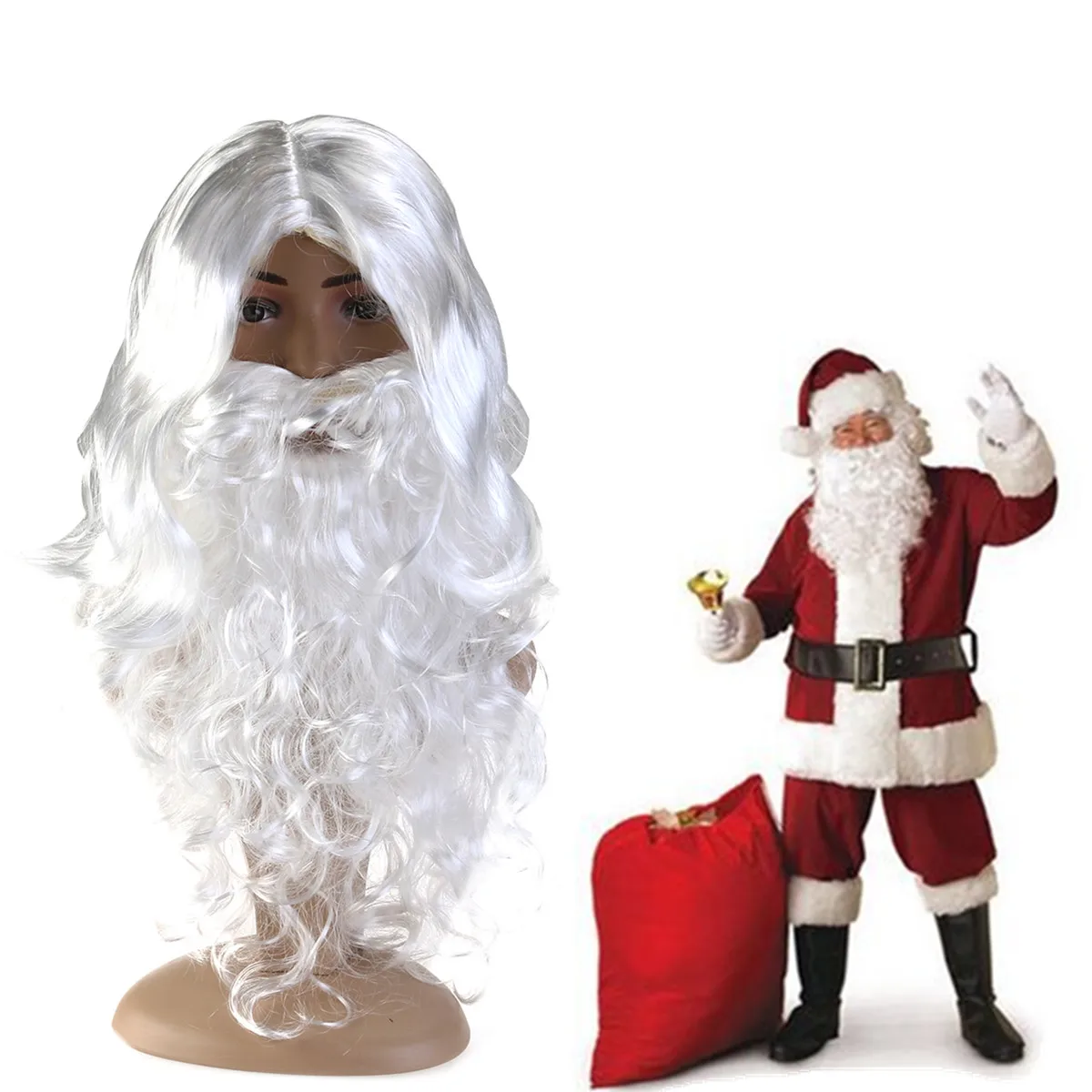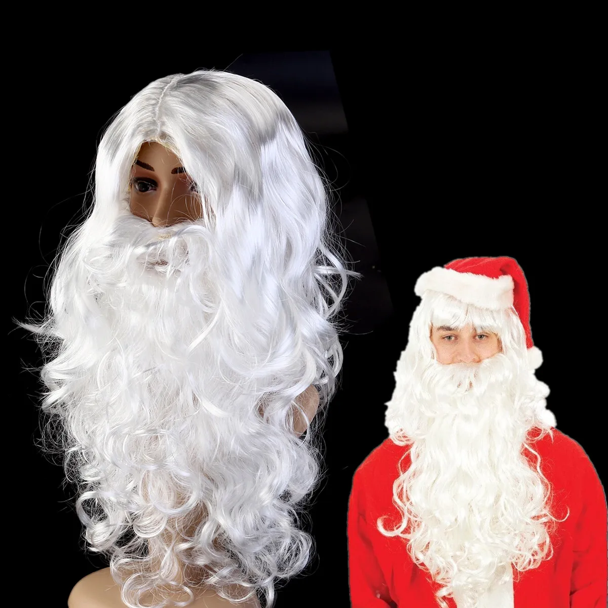 1 Set Wig and Beard Set Deluxe Santa Wig Cosplay Prop for Christmas