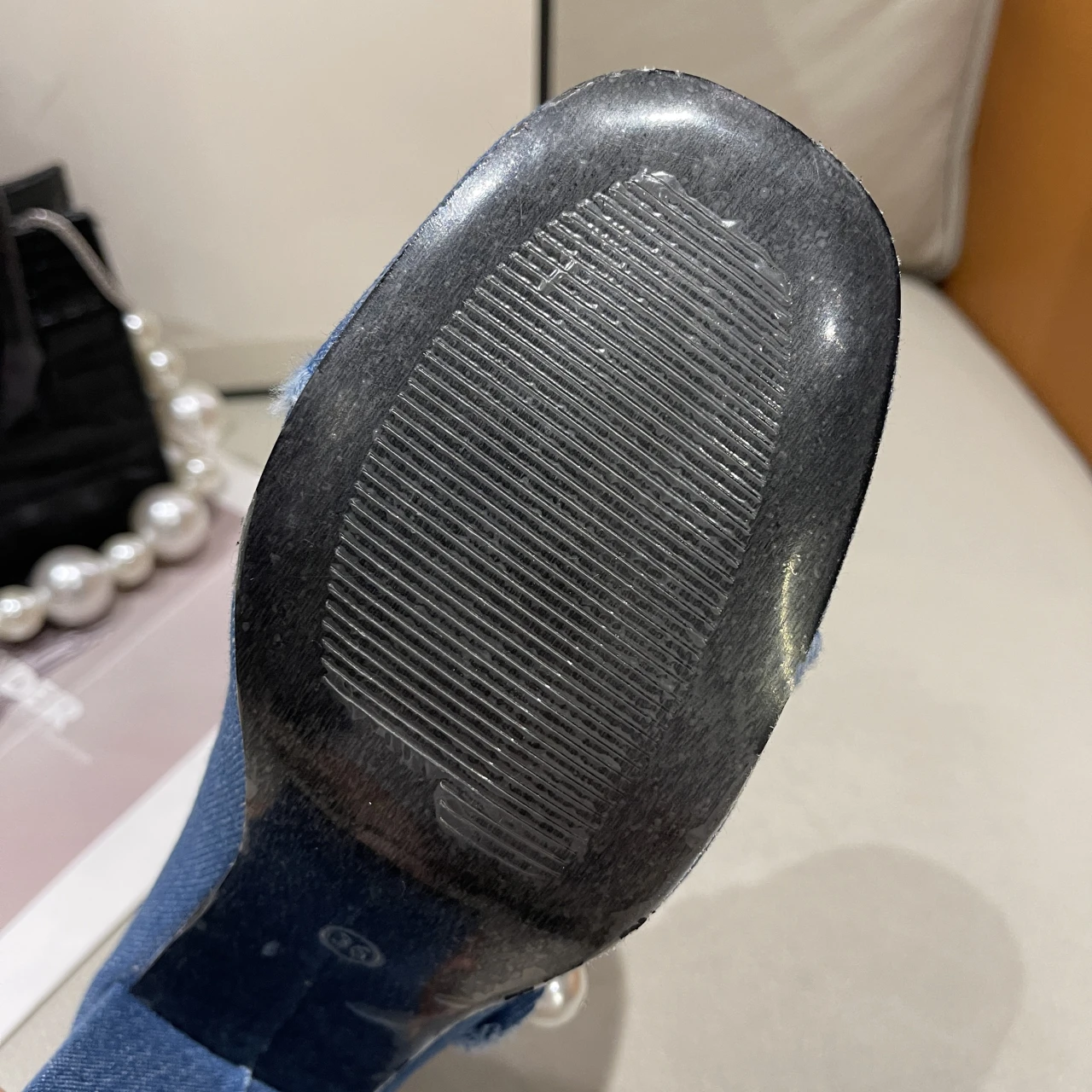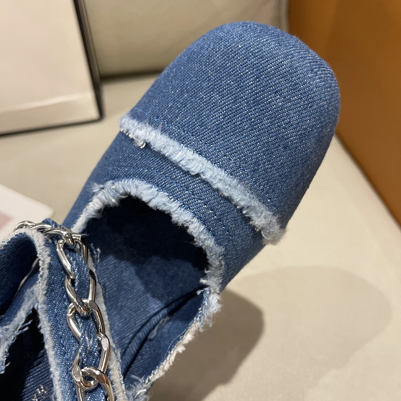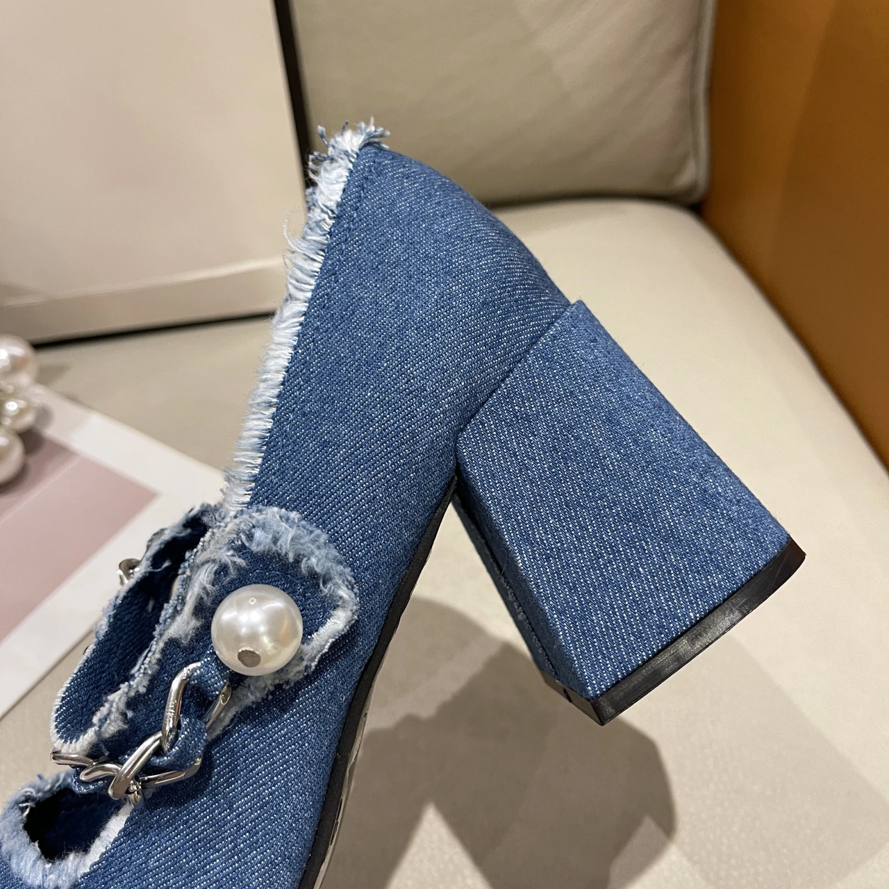 New Women Dress Shoes High Heels Mary Janes Shoes Denim Pumps Ankle Strap Zapatos Mujer