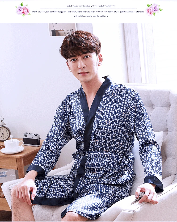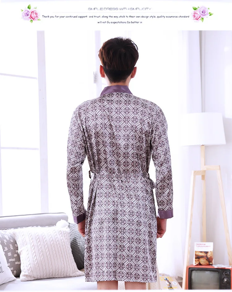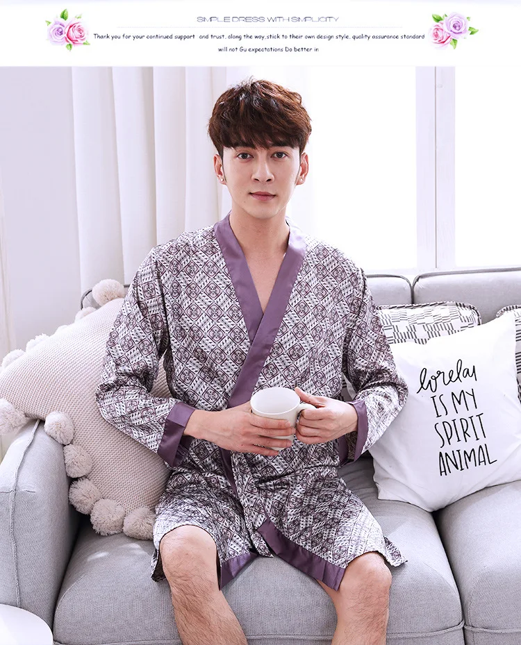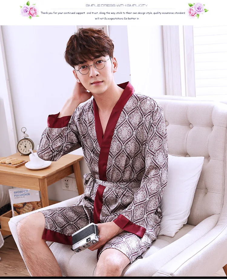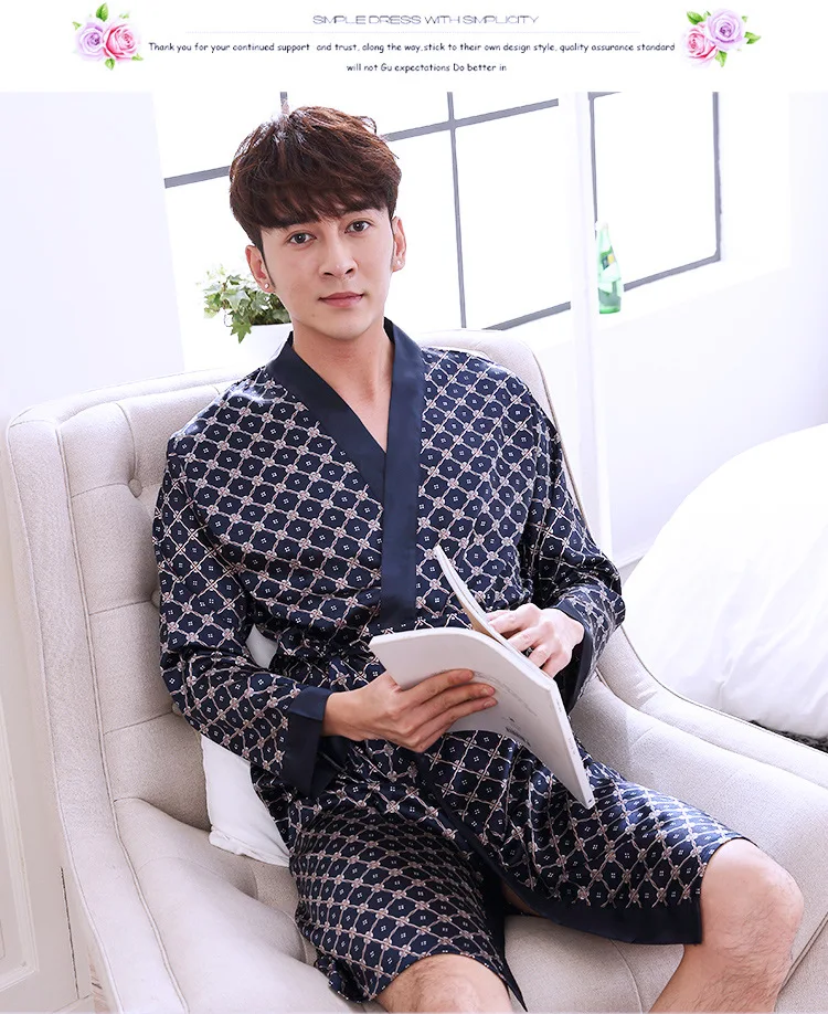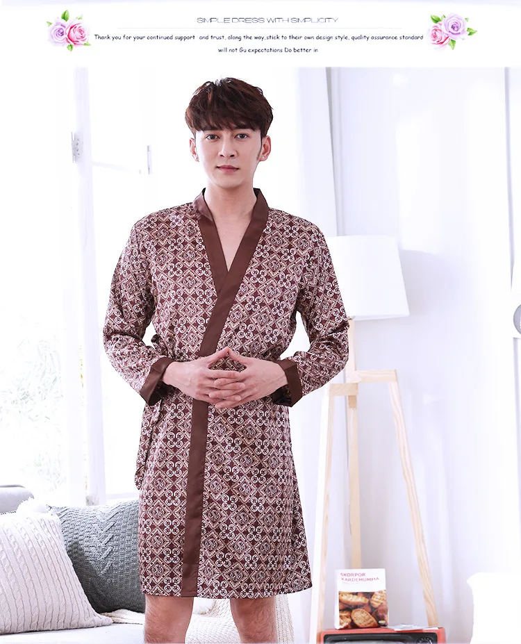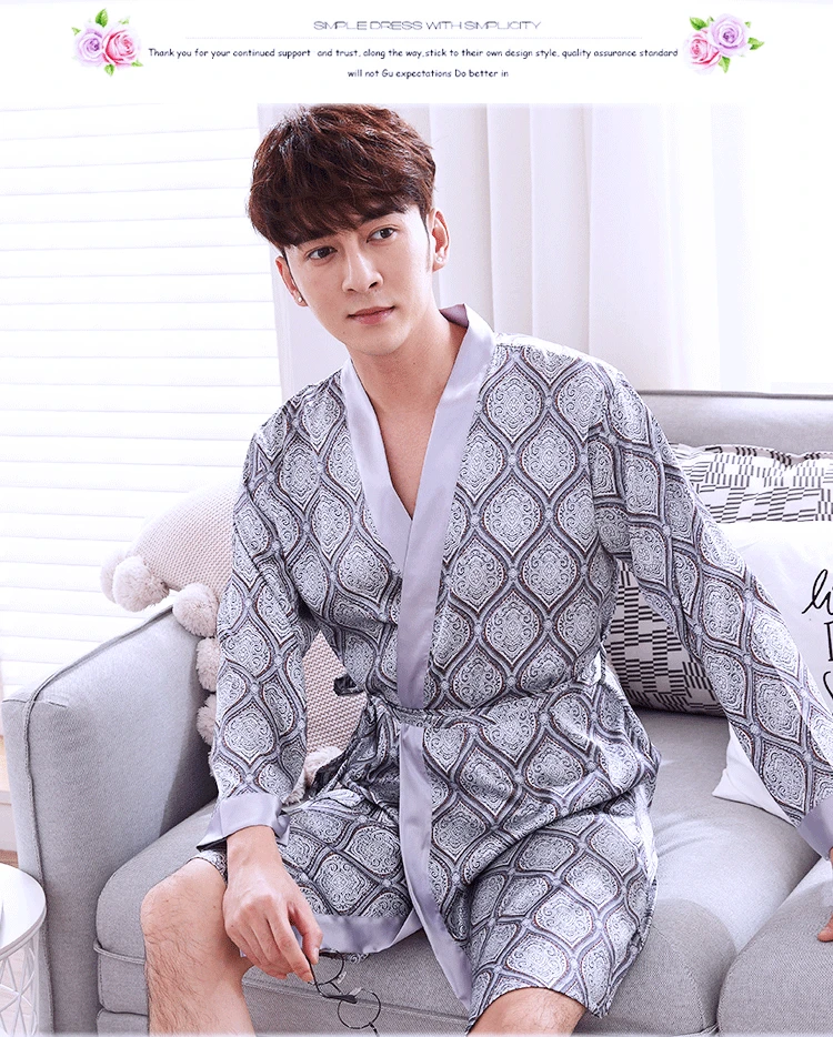 Nightgown Men's Summer Long Sleeve Thin Bathrobe Japanese Kimono Cardigan Printed Casual Homewear Robe Male Sleepwear Szlafrok