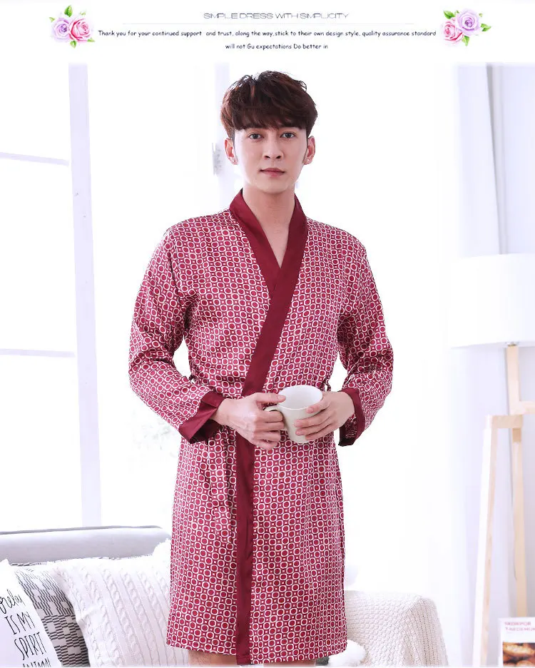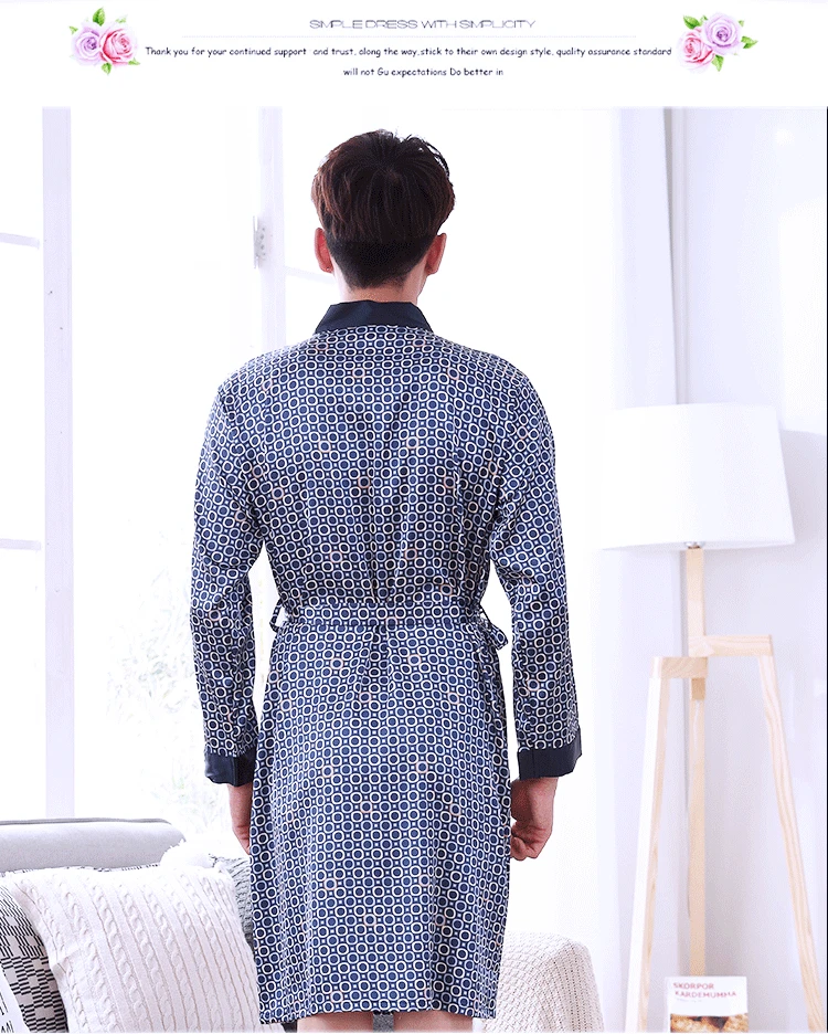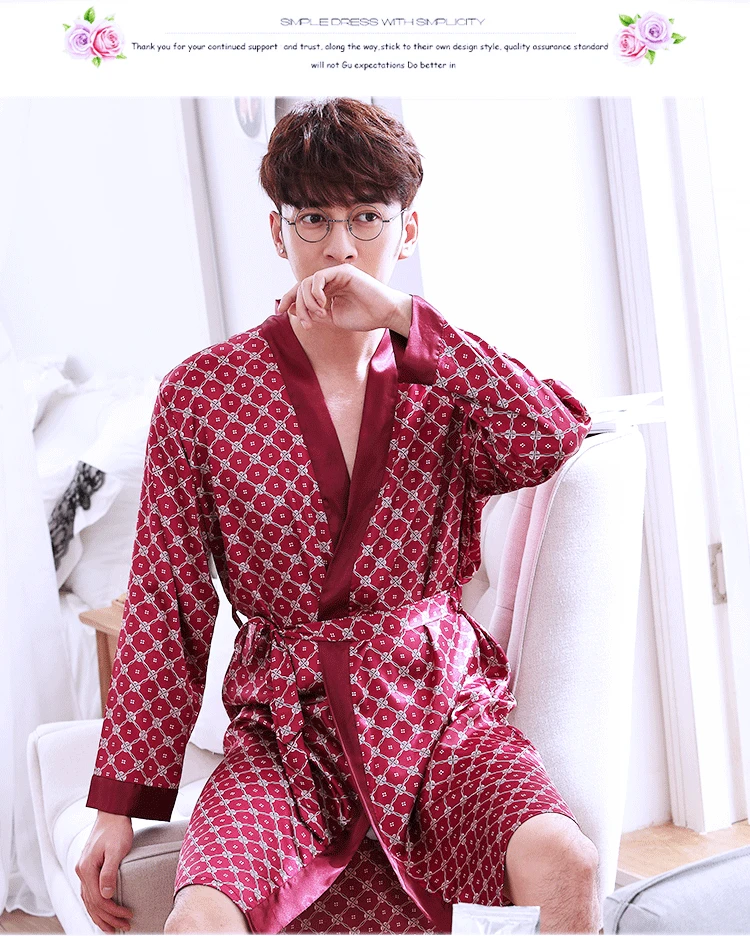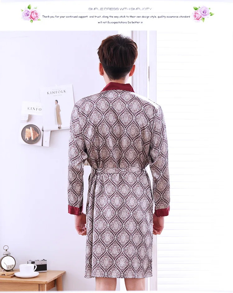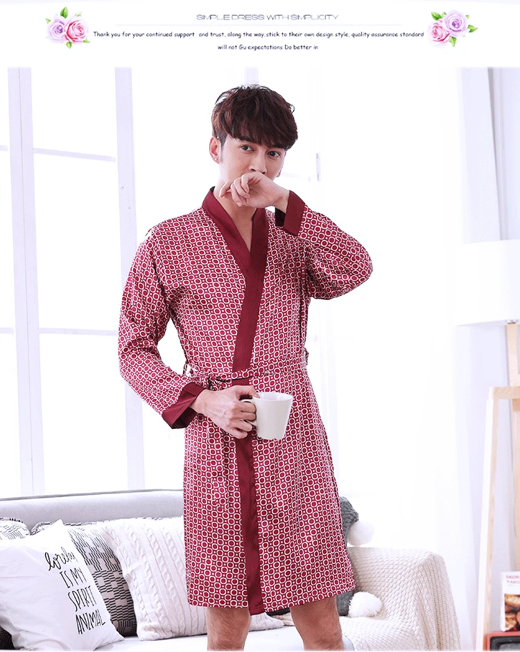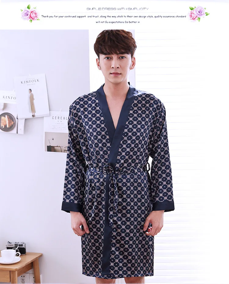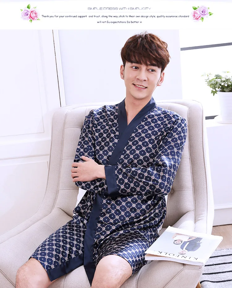 Nightgown Men's Summer Long Sleeve Thin Bathrobe Japanese Kimono Cardigan Printed Casual Homewear Robe Male Sleepwear Szlafrok