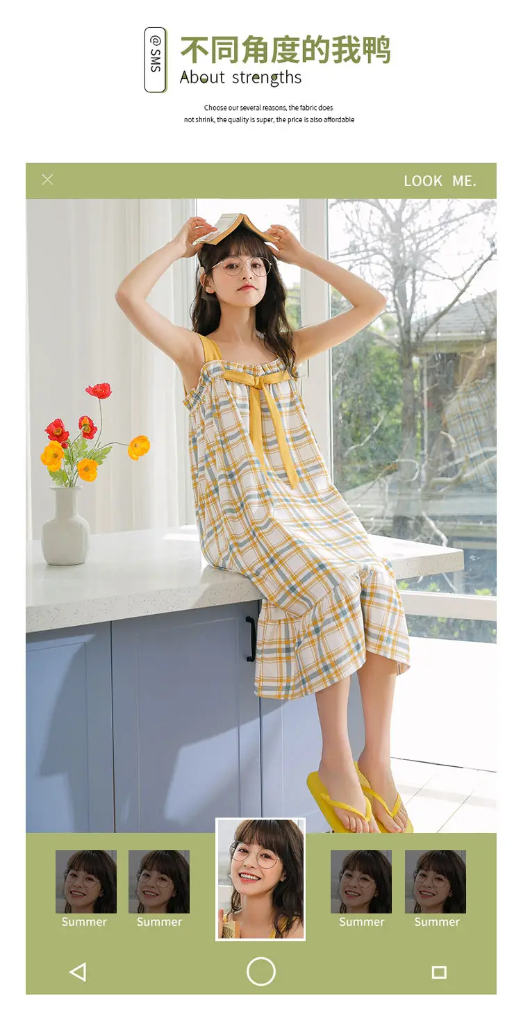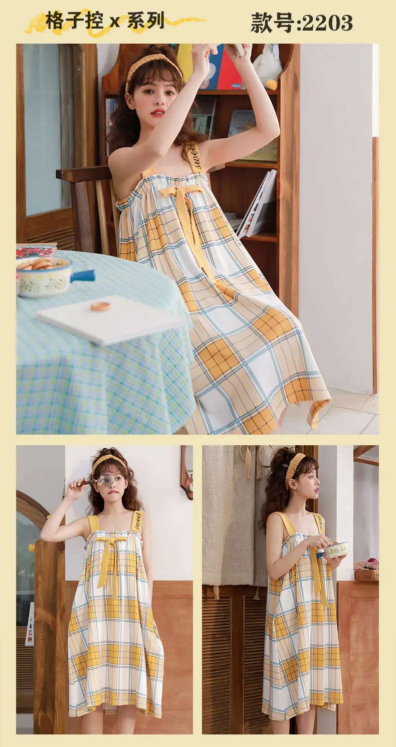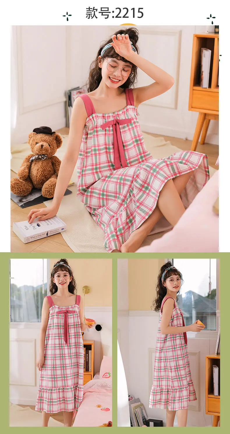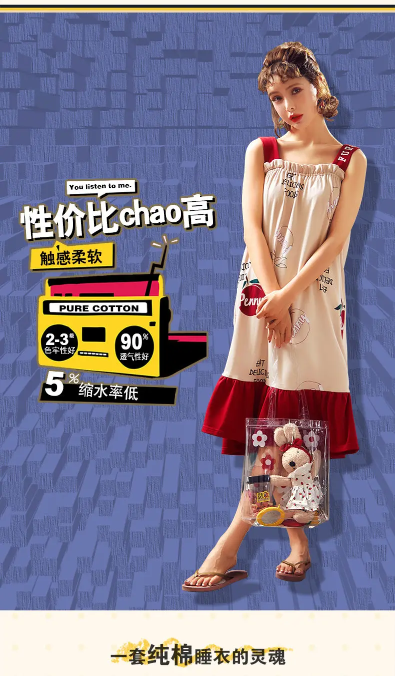Nightgowns Women Strappy Ruffles Printed Sleeveless Sleep-shirts Baggy Soft Comfortable Lovely Girls Trendy Leisure Nightwear
