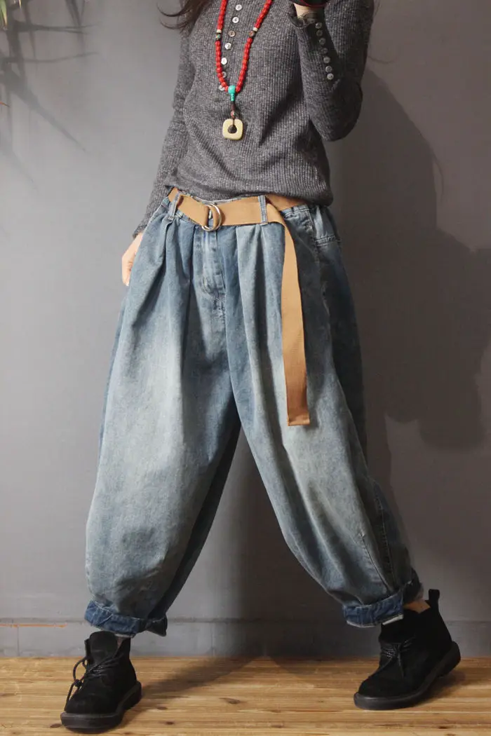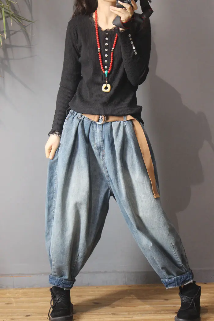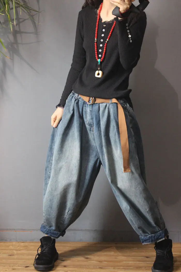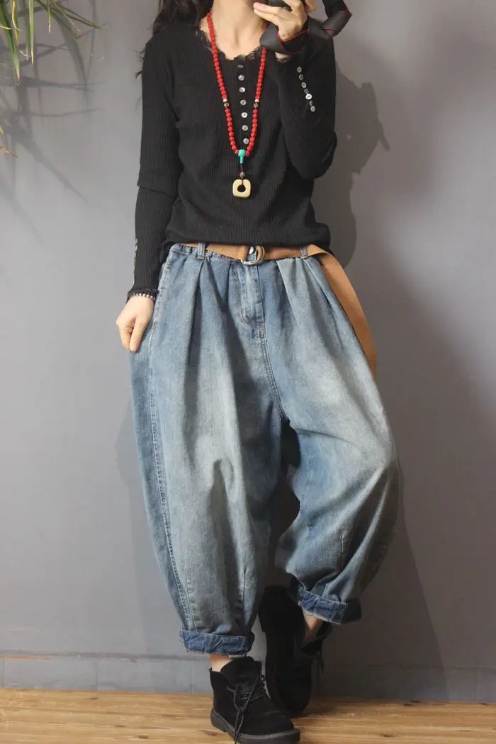 NINI WONDERLAND Autumn Casual Denim Harem Pants 2021 Spring Female Do Old Cotton Loose Jeans Women Vintage Retro Lantern Pants