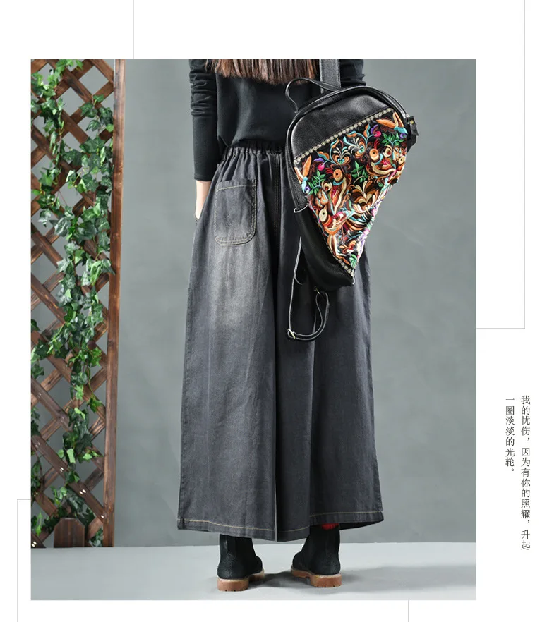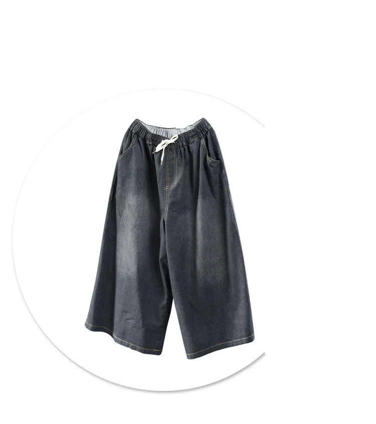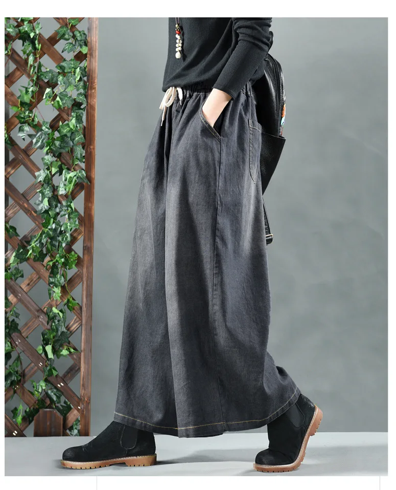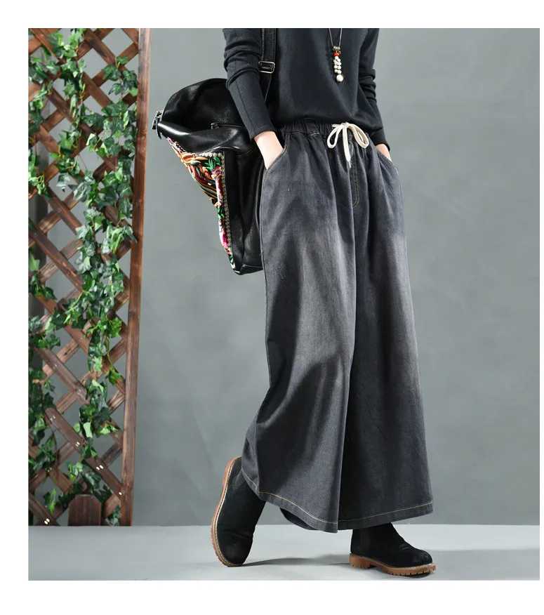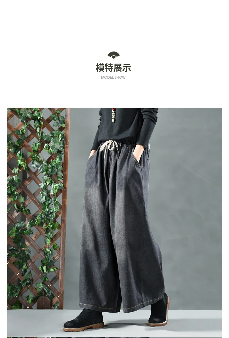 NINI WONDERLAND Autumn Denim Wide Leg Pants 2021 Women Elastic Waist Loose Trousers Female Spring Cowboy Casual Pants Big Size